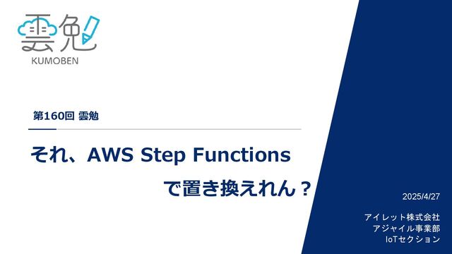 2025/4/27 アイレット株式会社 アジャイル事業部 IoTセクション 第160回 雲勉 それ、AWS Step Functions で置き換えれん?