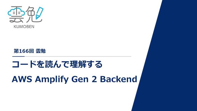 第166回 雲勉 コードを読んで理解する AWS Amplify Gen 2 Backend