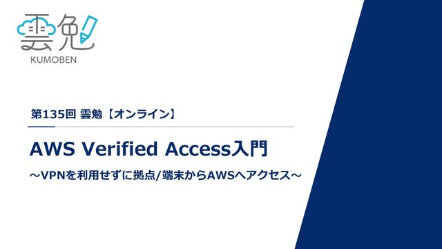 第135回 雲勉【オンライン】 AWS Verified Access⼊⾨ 〜VPNを利⽤せずに拠点/端末からAWSへアクセス〜