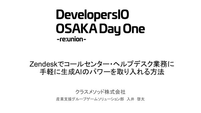 Zendeskでコールセンター・ヘルプデスク業務に 手軽に生成AIのパワーを取り入れる方法 クラスメソッド株式会社 産業支援グループゲームソリューション部 入井 啓太