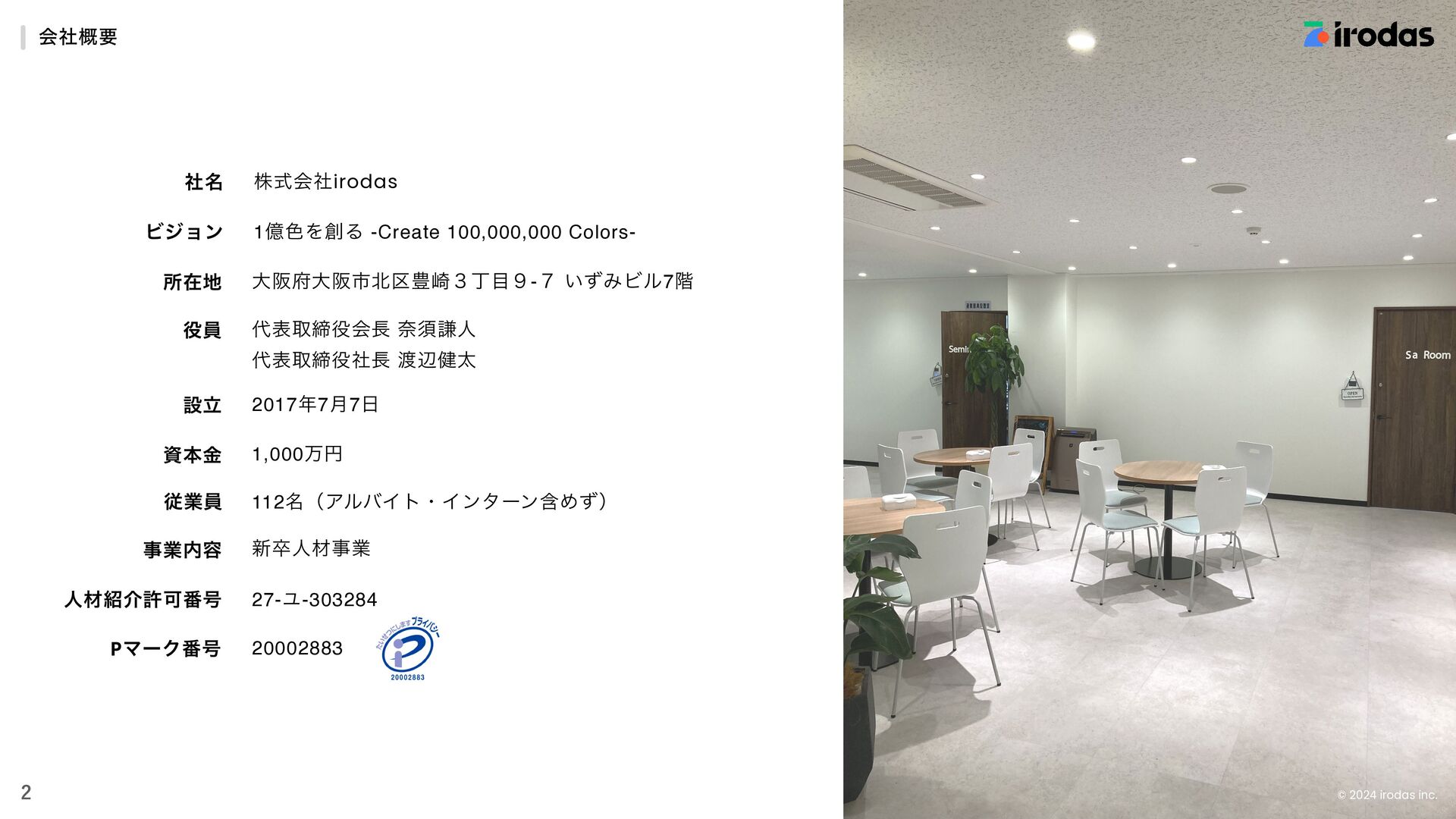ձࣾ֓ཁ © 2024 irodas inc. ໊ࣾ ॴࡏ һ ઃཱ