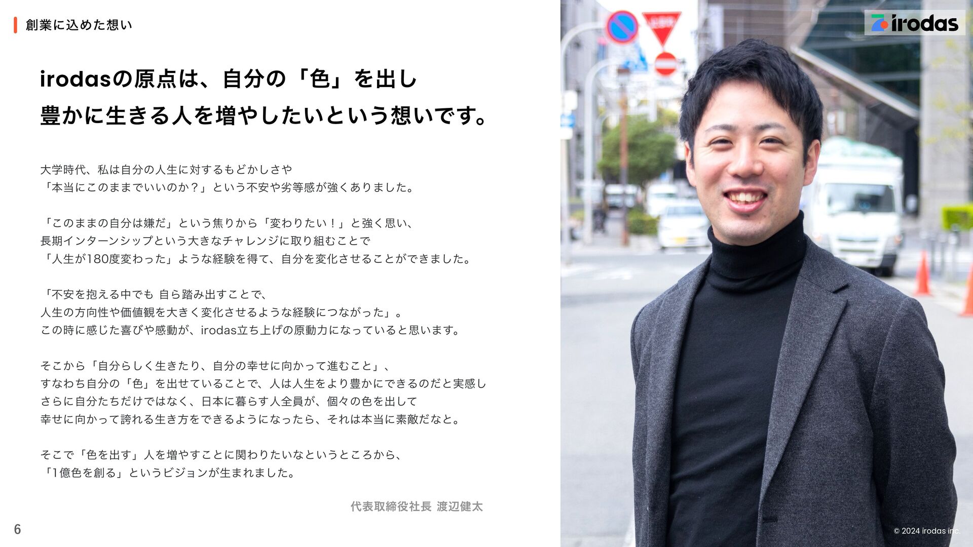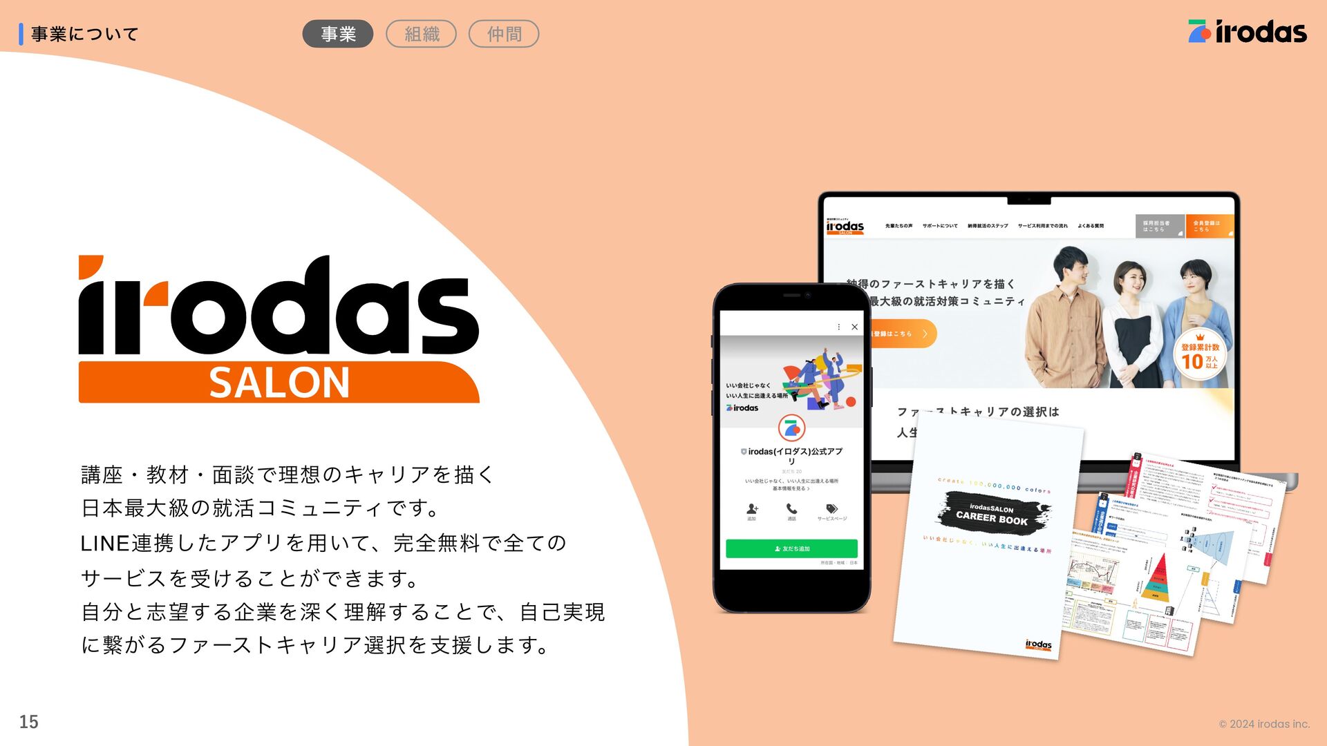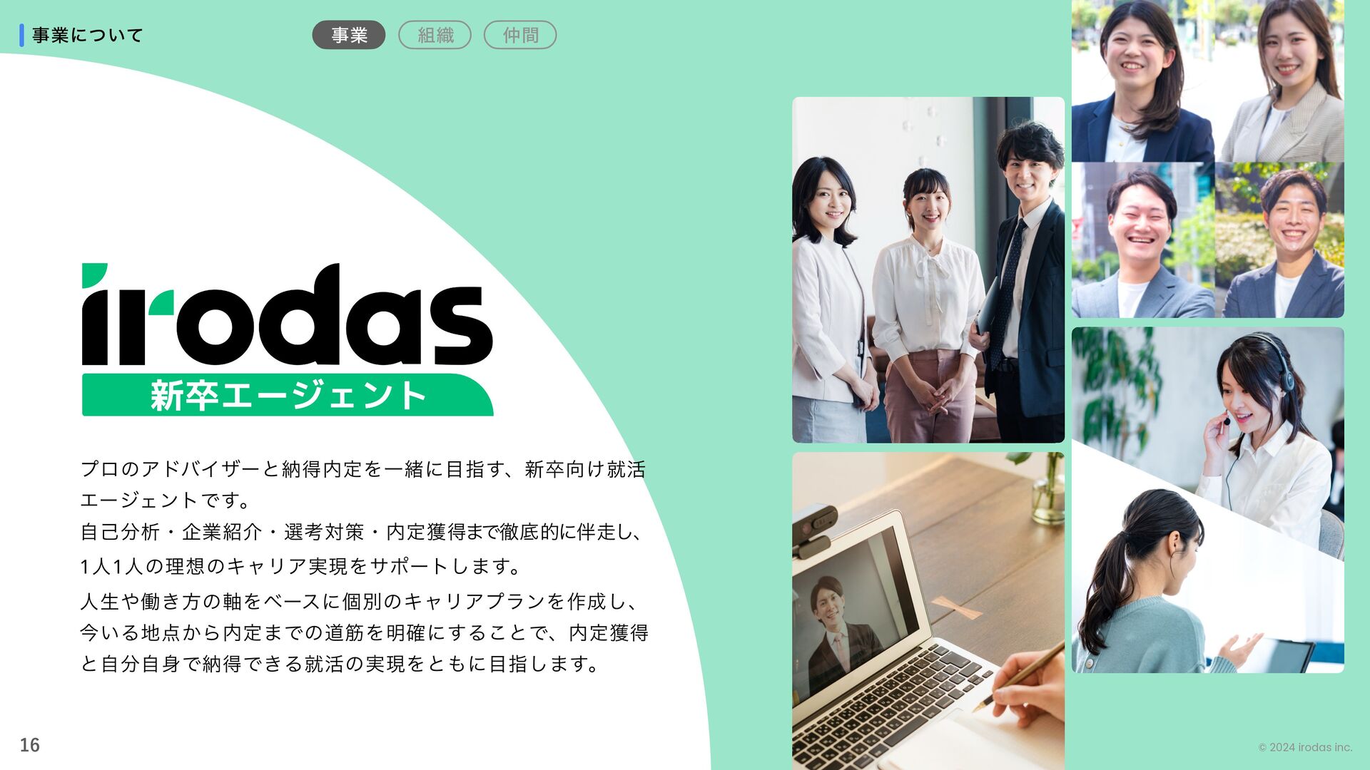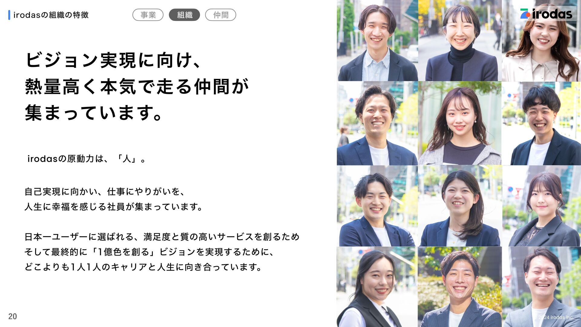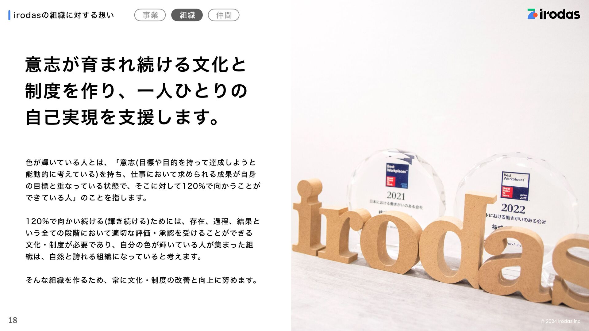 ҰਓҰਓ͕ࣗݾ࣮ݱͯ͠ಇ͚ΔձࣾΛࢦ͍ͯ͠·͢ɻ ࠾༻ ҭ © 2024 irodas inc.
