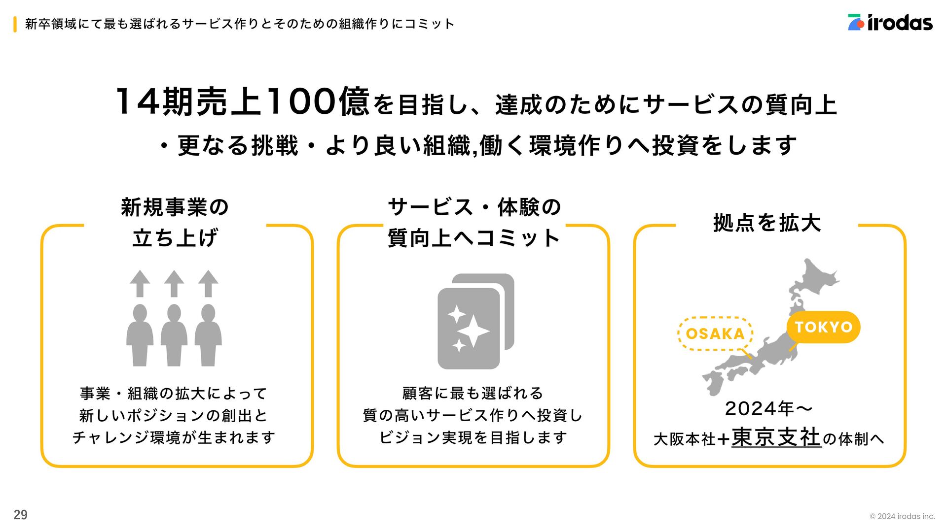 ڌΛ֦େ αʔϏεɾମݧͷ ্࣭ίϛοτ ৽نࣄۀͷ ্ཱͪ͛ ࣄۀɾ৫ͷ֦େʹΑͬͯ ৽͍͠ϙδγϣϯͷग़ͱ νϟϨϯδڥ͕ੜ·Ε·͢ ސ٬ʹ࠷બΕΔ ࣭ͷߴ͍αʔϏε࡞Γࢿ͠ Ϗδϣϯ࣮ݱΛࢦ͠·͢ © 2024 irodas inc.