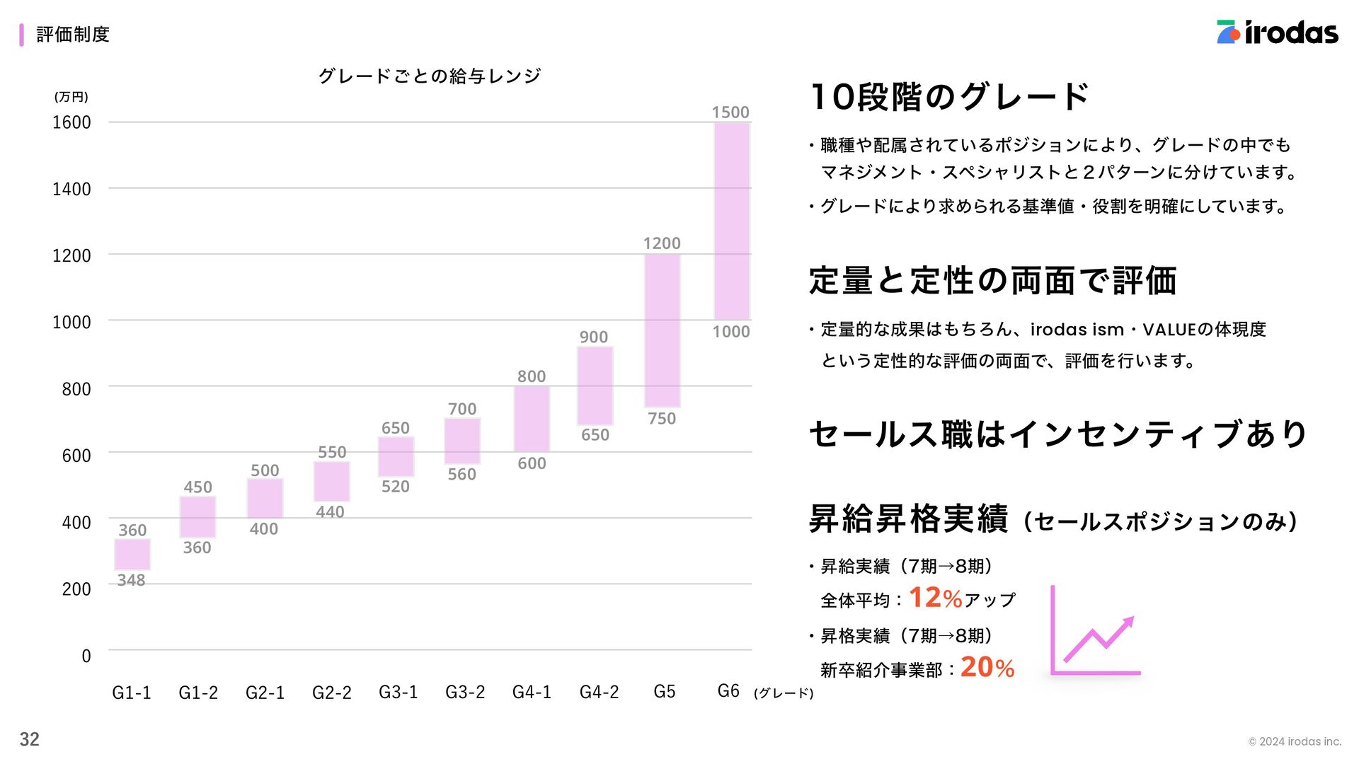 ( ( ( ( ( ( ( ( ( ( ஈ֊ͷάϨʔυ ɾ৬छଐ͞Ε͍ͯΔϙδγϣϯʹΑΓɺάϨʔυͷதͰ ɹϚωδϝϯτɾεϖγϟϦετͱ̎ύλʔϯʹ͚͍ͯ·͢ɻ ɾάϨʔυʹΑΓٻΊΒΕΔج४ɾׂΛ໌֬ʹ͍ͯ͠·͢ɻ ఆྔͱఆੑͷ྆໘ͰධՁ ɾఆྔతͳՌͪΖΜɺirodas ismɾVALUEͷମݱ ɹͱ͍͏ఆੑతͳධՁͷ྆໘ͰɺධՁΛߦ͍·͢ɻ ηʔϧε৬ΠϯηϯςΟϒ͋Γ ສԁ άϨʔυ άϨʔυ͝ͱͷڅ༩Ϩϯδ 348 360 360 450 500 400 440 550 650 520 560 700 800 600 650 900 750 1200 1000 1500 ঢڅঢ࣮֨ʢηʔϧεϙδγϣϯͷΈʣ ɾঢڅ࣮ʢظˠظʣ ɹશମฏۉɿ12ˋΞοϓ © 2024 irodas inc.