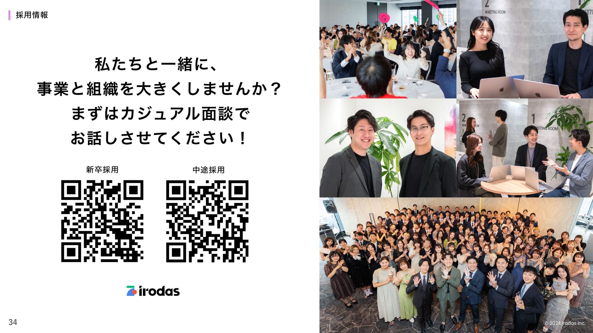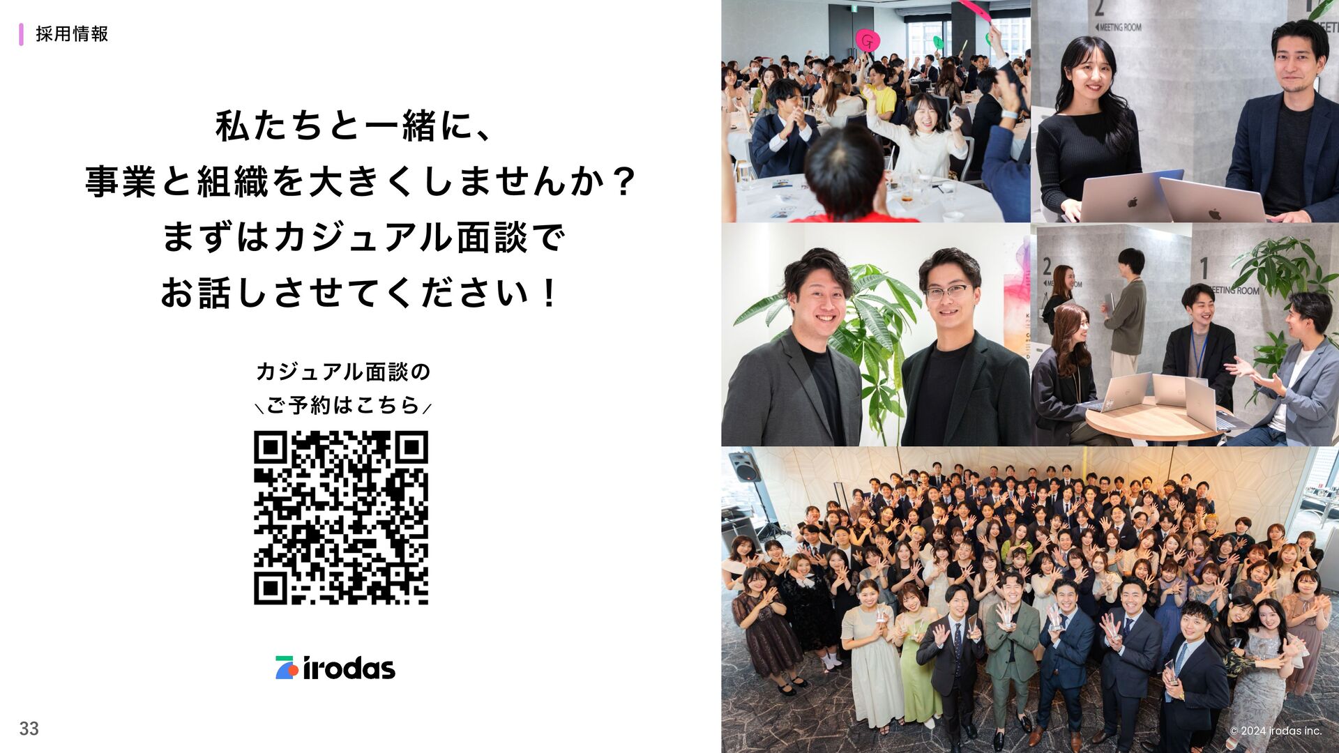 ࠾༻ใ ࢲͨͪͱҰॹʹɺ ࣄۀͱ৫Λେ͖͘͠·ͤΜ͔ʁ ·ͣΧδϡΞϧ໘ஊͰ ͓͍ͤͯͩ͘͠͞͞ʂ © 2024 irodas inc.