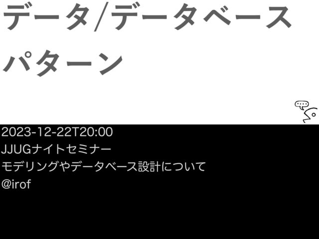 【オンライン】 JJUGナイトセミナー「モデリングやデータベース設計について」12/22(金) 開催 https://jjug.doorkeeper.jp/events/167044