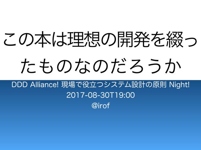 2017-08-30T19:00 DDD Alliance! 現場で役立つシステム設計の原則 Night! https://ddd-alliance.connpass.com/event/64219/