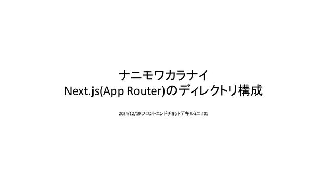 ナニモワカラナイ Next.js(App Router)のディレクトリ構成 2024/12/19 フロントエンドチョットデキル ミニ #01