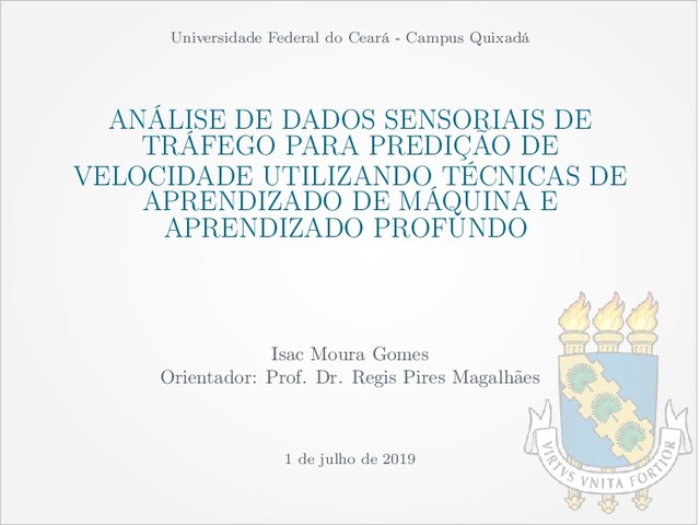 Apresentação do Trabalho de Conclusão de Curso 1 para servir como base para os interessados em apresentar o TCC 1. O trabalho tem como tema a Análise de dados sensoriais de tráfego para predição de velocidade utilizando técnicas de aprendizado de máquina e aprendizado profundo.