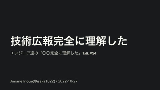 ٕज़ใશʹཧղͨ͠ ΤϯδχΞୡͷʮʓʓશʹཧղͨ͠ʯTalk #34 Amane Inoue(@isaka1022) / 2022-10-27