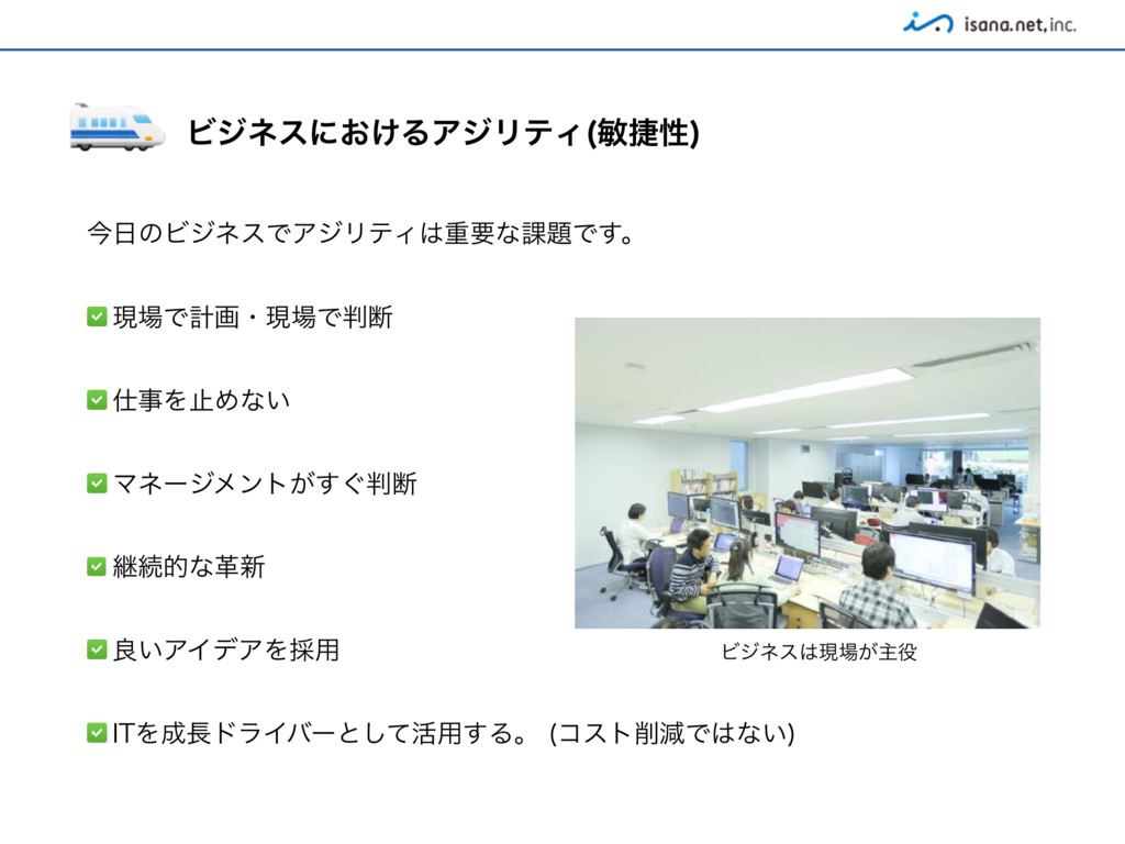 Ϗδωεʹ͓͚ΔΞδϦςΟ හডੑ ࠓͷϏδωεͰΞδϦςΟॏཁͳ՝Ͱ͢ɻ ݱͰܭըɾݱͰஅ ࣄΛࢭΊͳ͍ Ϛωʔδϝϯτ͕͙͢அ ܧଓతͳֵ৽ ྑ͍ΞΠσΞΛ࠾༻ *5ΛυϥΠόʔͱͯ͠׆༻͢Δɻ ίετݮͰͳ͍