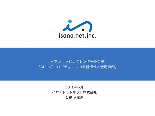 2018/5/24 日本ショッピングセンター協会様の「AI.IoT.ロボティクス活用セミナー」にて弊社代表 石谷が講演したスライドを公開します。