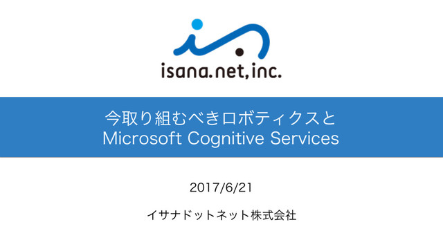 2017/6/21開催のMicrosoftウェブセミナーでの資料公開。「今取り組むべきロボティクスとMicrosoftCognitive Services」についてお話ししました。