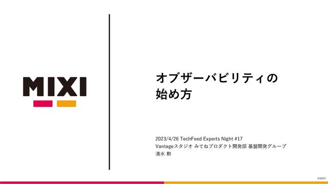 ©MIXI オブザーバビリティの 始め⽅ 2023/4/26 TechFeed Experts Night #17 Vantageスタジオ みてねプロダクト開発部