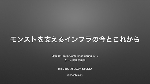 ϞϯετΛࢧ͑ΔΠϯϑϥͷࠓͱ͜Ε͔Β 2016.3.1 dots. Conference Spring 2016 ήʔϜ։ൃͷཪଆ mixi, Inc. XFLAG™