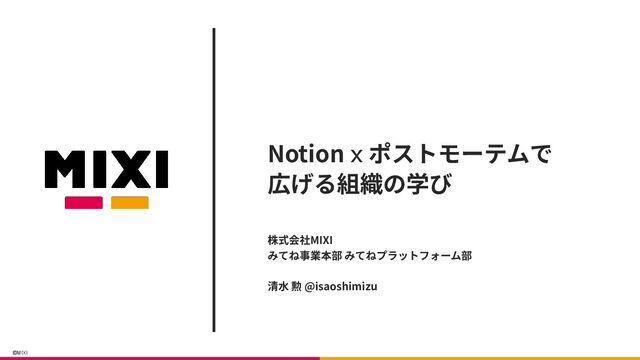 ©MIXI Notion x ポストモーテムで 広げる組織の学び 株式会社MIXI みてね事業本部 みてねプラットフォーム部 清⽔ 勲