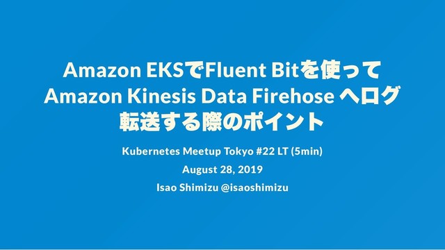 ブログ) https://aws.amazon.com/jp/blogs/news/centralized-container-logging- uent-bit/ Fluent Bit is a lightweight and extensible Log Processor that comes with full support for Kubernetes: “ “ 7