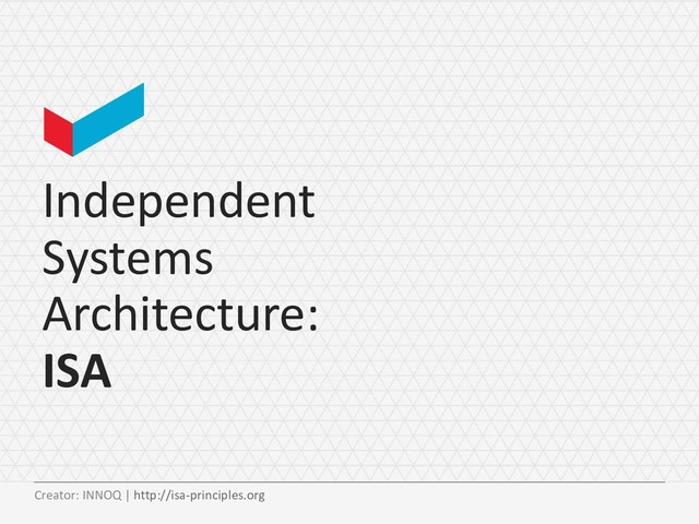 ISA (Independent Systems Architecture) is a collection of best practices based on experience in particular with microservices and Self-contained Systems and the challenges faced in those projects.