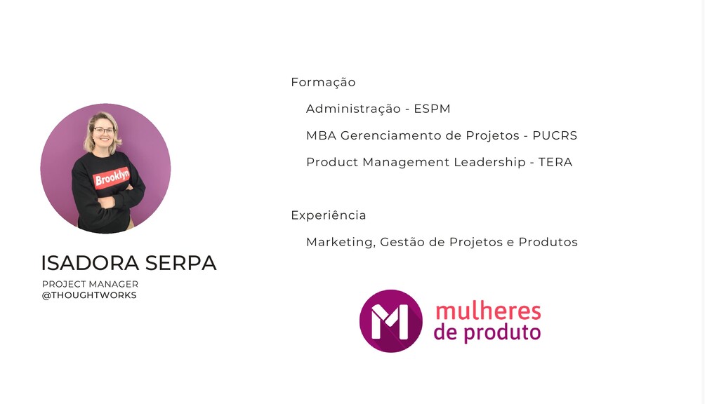 É comum encontrar em diversas referências que para trabalhar com gestão de produtos você deve ter conhecimentos de UX, Negócio e Tecnologia, mas será que estar nessa intersecção é o suficiente? Não! Esta palestra irá abordar as habilidades que não são ensinadas nos cursos, nos livros e não estão na descrição deste papel e de que forma é possível desenvolvê-las para auxiliar sua equipe e o seu produto a atingirem melhores resultados.
