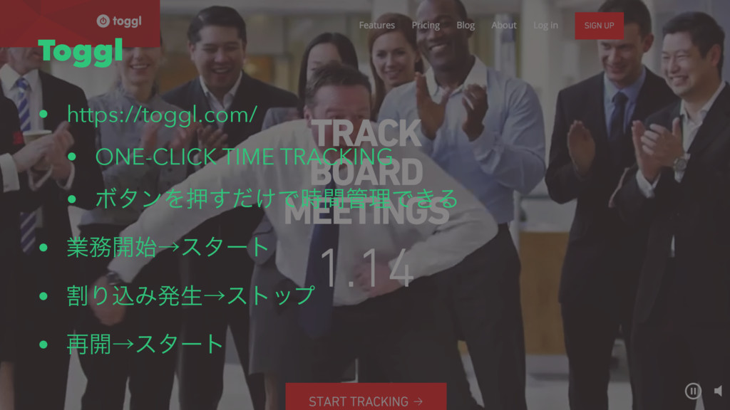 Toggl • https://toggl.com/ • ONE-CLICK TIME TRACKING • ϘλϯΛԡ͚ͩ͢Ͱ࣌ؒཧͰ͖Δ •