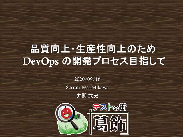 品質向上・生産性向上のため DevOps の開発プロセス目指して 2020/09/16 Scrum Fest Mikawa 井関 武史