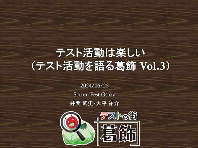 テスト活動は楽しい (テスト活動を語る葛飾 Vol.3) 2024/06/22 Scrum Fest Osaka 井関 武史・大平 祐介