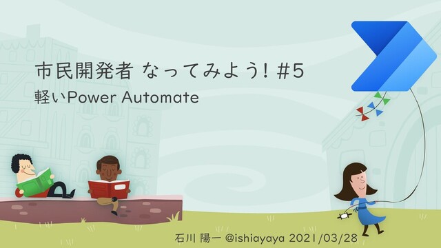 市民開発者 なってみよう! #5 軽いPower Automate 石川 陽一 @ishiayaya 2021/03/28