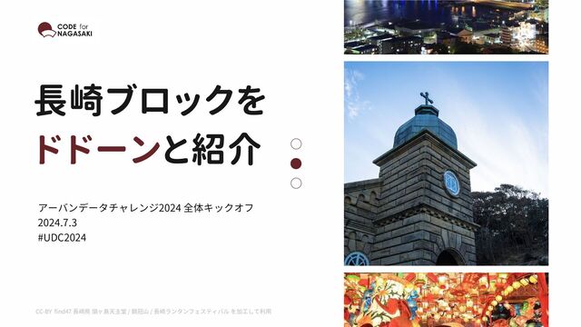 長崎ブロックを ドドーンと紹介 アーバンデータチャレンジ2024 全体キックオフ 2024.7.3 #UDC2024 CC-BY find47 長崎県 頭ヶ島天主堂