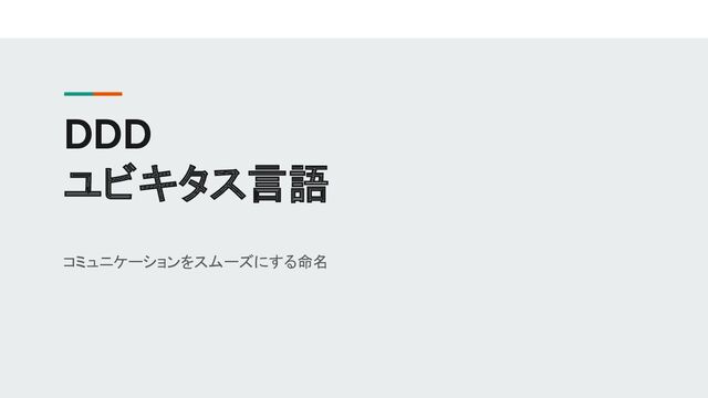 背景 ・昨年末〜のプロジェクトで、コード内の命名や 用語がバラバラになってしまった ・用語集などを作ればよかった ・言葉がバラバラだと知識の共有のためにオー バーヘッドが生じてよくない ↓ 新規プロジェクトで反省を生かすために、ユビ キタス言語について調べてみた