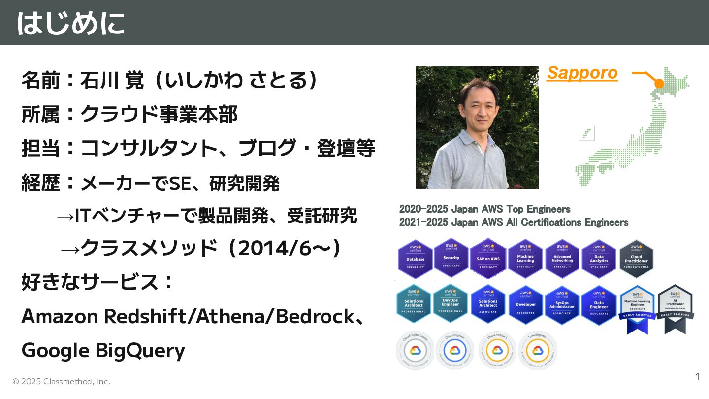 1. © 2025 Classmethod, Inc. はじめに 1 名前:石川 覚(いしかわ さとる) 所属:クラウド事業本部