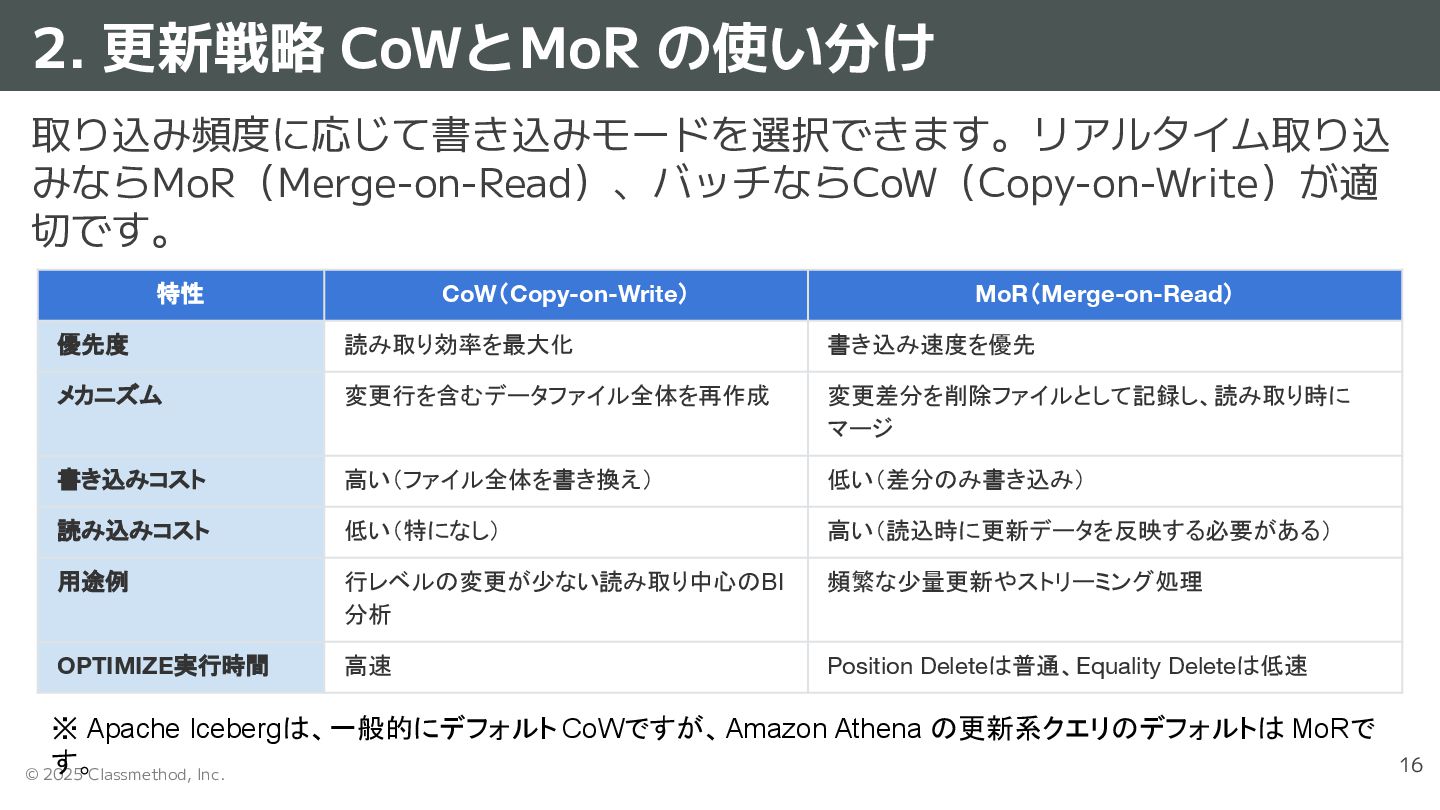 12. © 2025 Classmethod, Inc. 16 2. 更新戦略 CoWとMoR の使い分け 特性