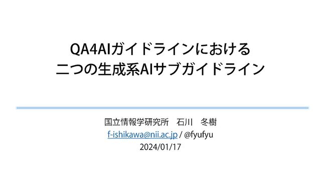 2024/01/17 QA4AI Open Conference での講演資料 「QA4AIガイドラインにおける二つの生成系AIサブガイドライン」