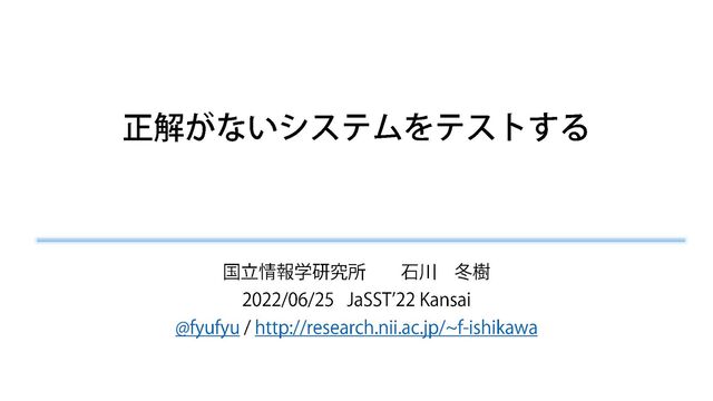 JaSST'22 Kansai (ソフトウェアテストシンポジウム)での講演資料です。 「正解がないシステムをテストする」