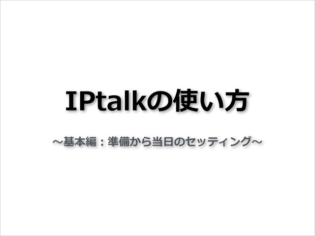 IPtalkの使い⽅方 〜~基本編:準備から当⽇日のセッティング〜~