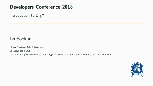The introduction of LaTeX presentation covered the basic syntax for document preparation for formats suitable for technical documents, reports and presentations. I started by using a plain text file, gradually filling up with a bunch of LaTeX code which can be easily managed with a version control system.