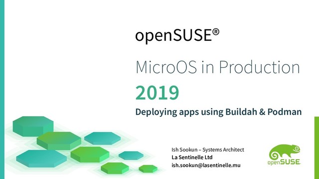 a Systems Architect for LSL Digital at La Sentinelle Ltd (Mauritius) and I am an openSUSE member. We publish: • Newspapers • Magazines • Guides & Manuals • School textbooks We do: • Advertising • Video Production • Software Development • Managed Services • Training & Consultancy