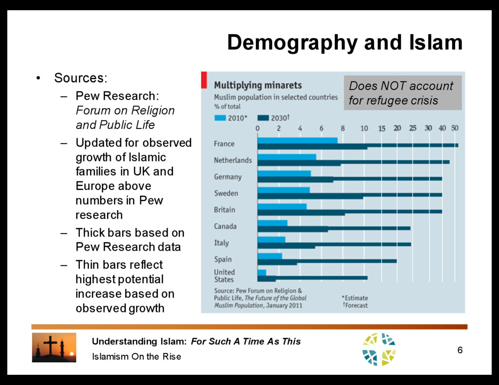 the Rise How Demography Impacts A Society • 0% - 2%: Strident calls for more attention, focus on religious rights. – US 0.9% (reported 0.6% in 2014) • 2% - 5%: Proselytize disaffected groups, including prisoners, gangs – Canada 3.2%, UK 5% • 5% - 10%: Exercise inordinate influence in proportion to the % of Muslims. Push for introduction of halal food, and call for Sharia law – Netherland 5.8%, Germany 7.1%, France 9.6% • 10% - 19%: Increase in lawlessness within ghettos ruled by Sharia law. Any non-Muslim action offends Islam and results in uprising. – Russia 14.4%, India 14% • 20% - 40%: Rioting, jihad militia formation, burnings of churches – Thailand 30.4% (southern Thailand) • 40% - 60%: Widespread terror attacks, militia warfare • 60% - 80%: Unfettered persecution, ethnic cleansing • 100%: “Islamic House of Peace” and full Sharia law 8 2016 Population assessment