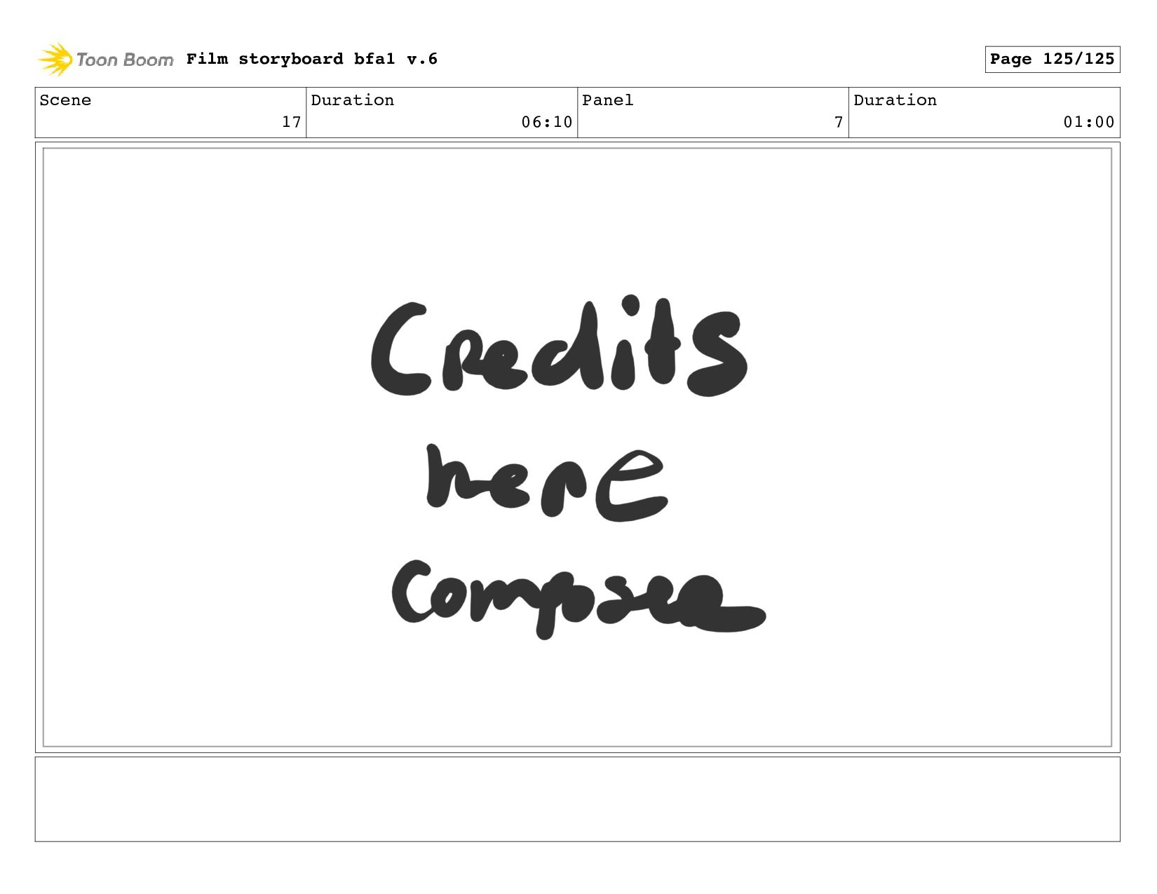 Scene 17 Duration 06:10 Panel 6 Duration 01:00 Film storyboard