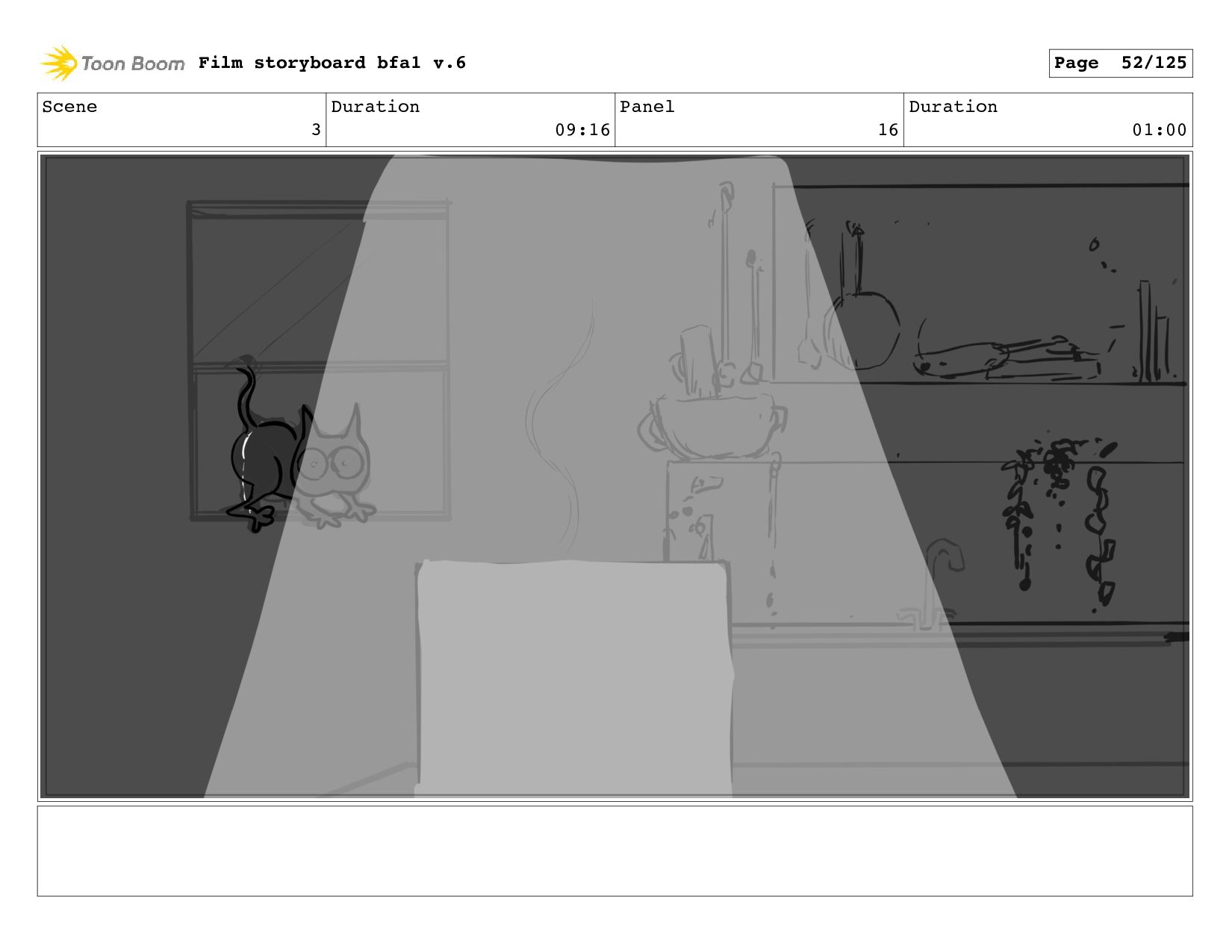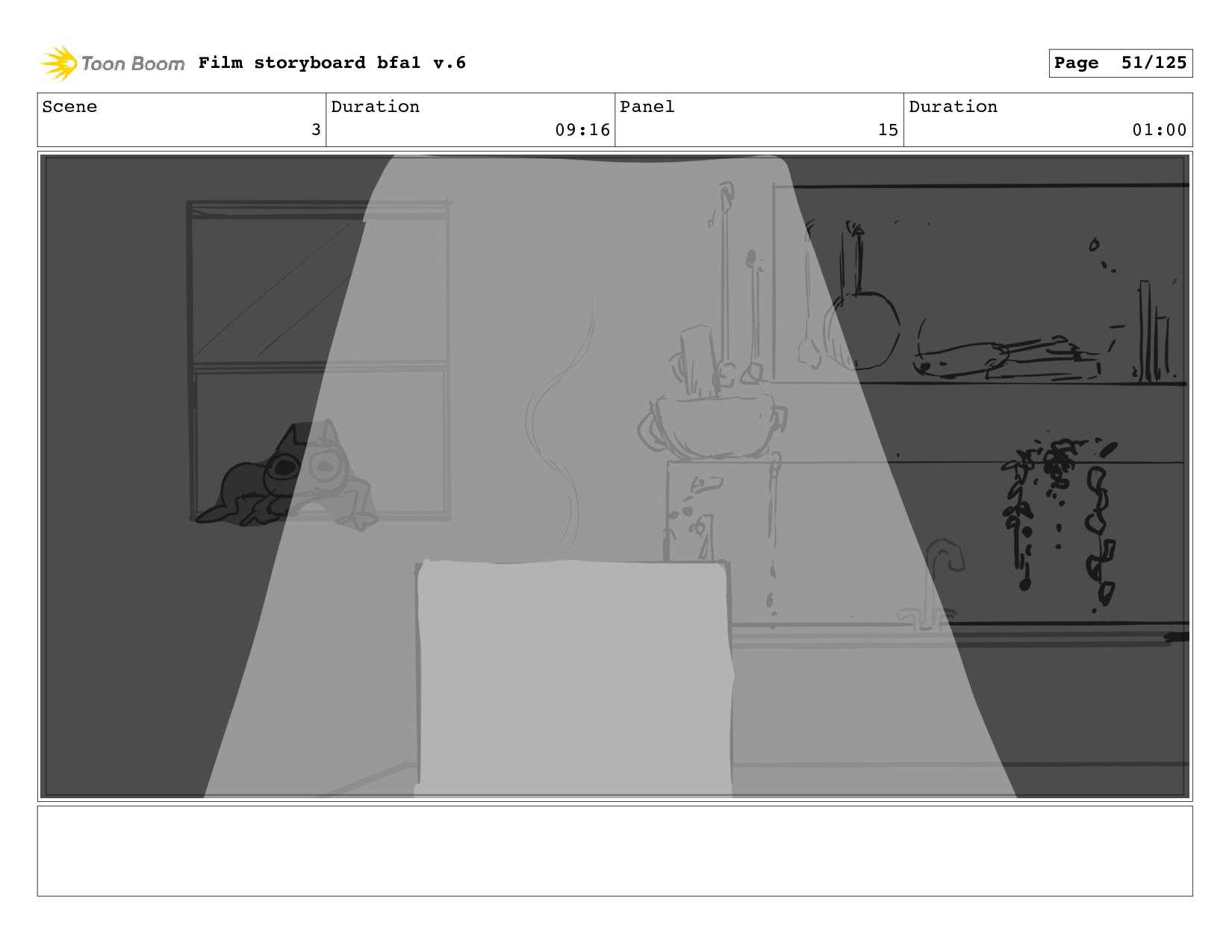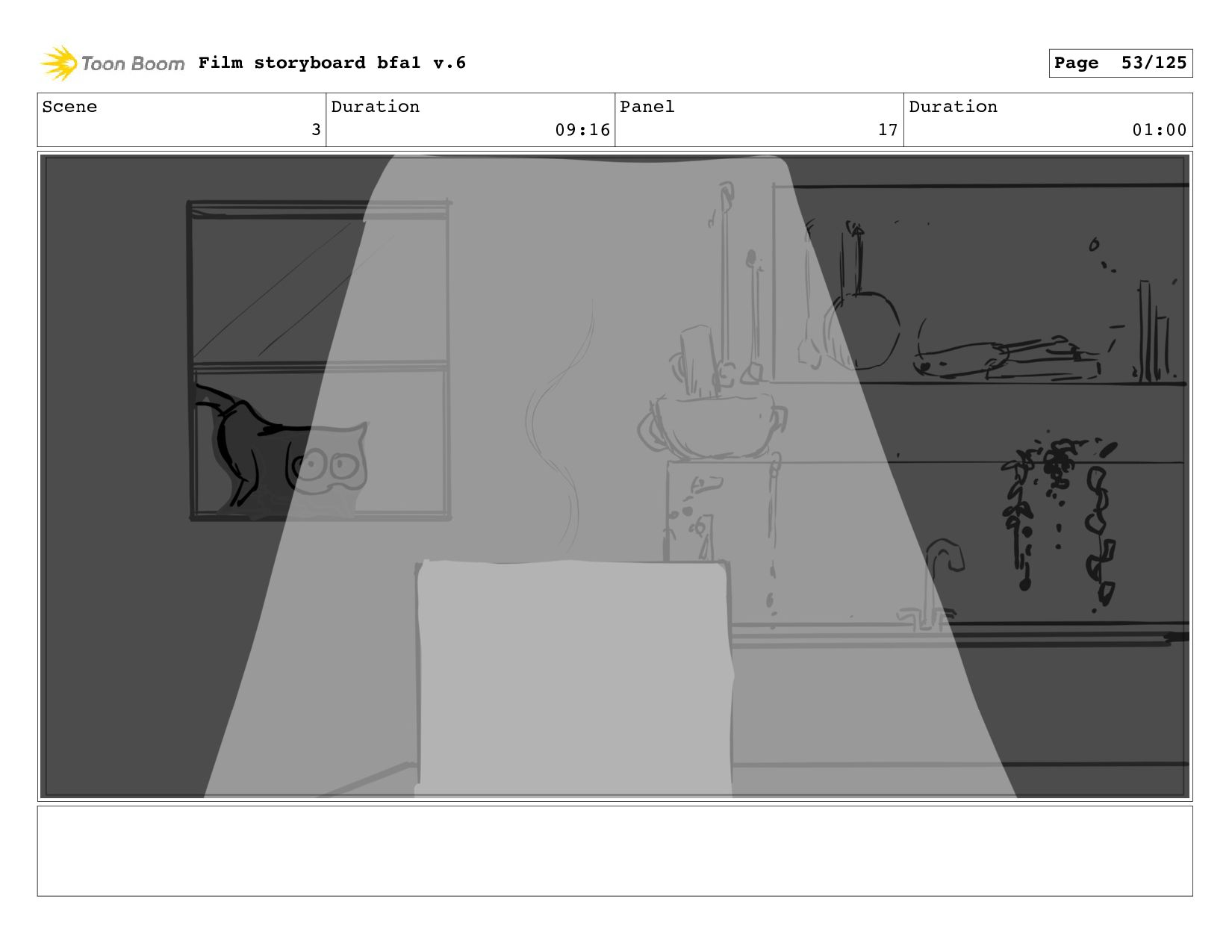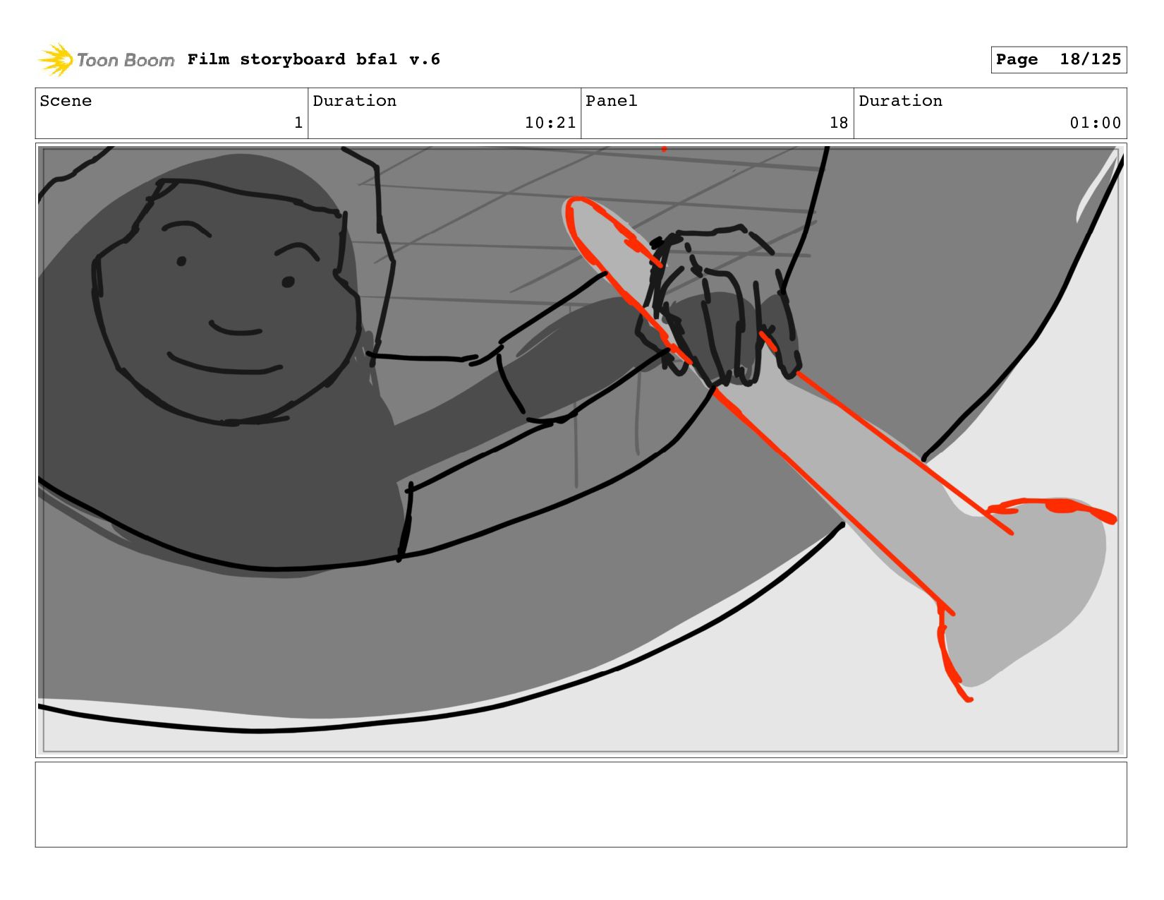 Scene 1 Duration 10:21 Panel 5 Duration 00:01 Film storyboard
