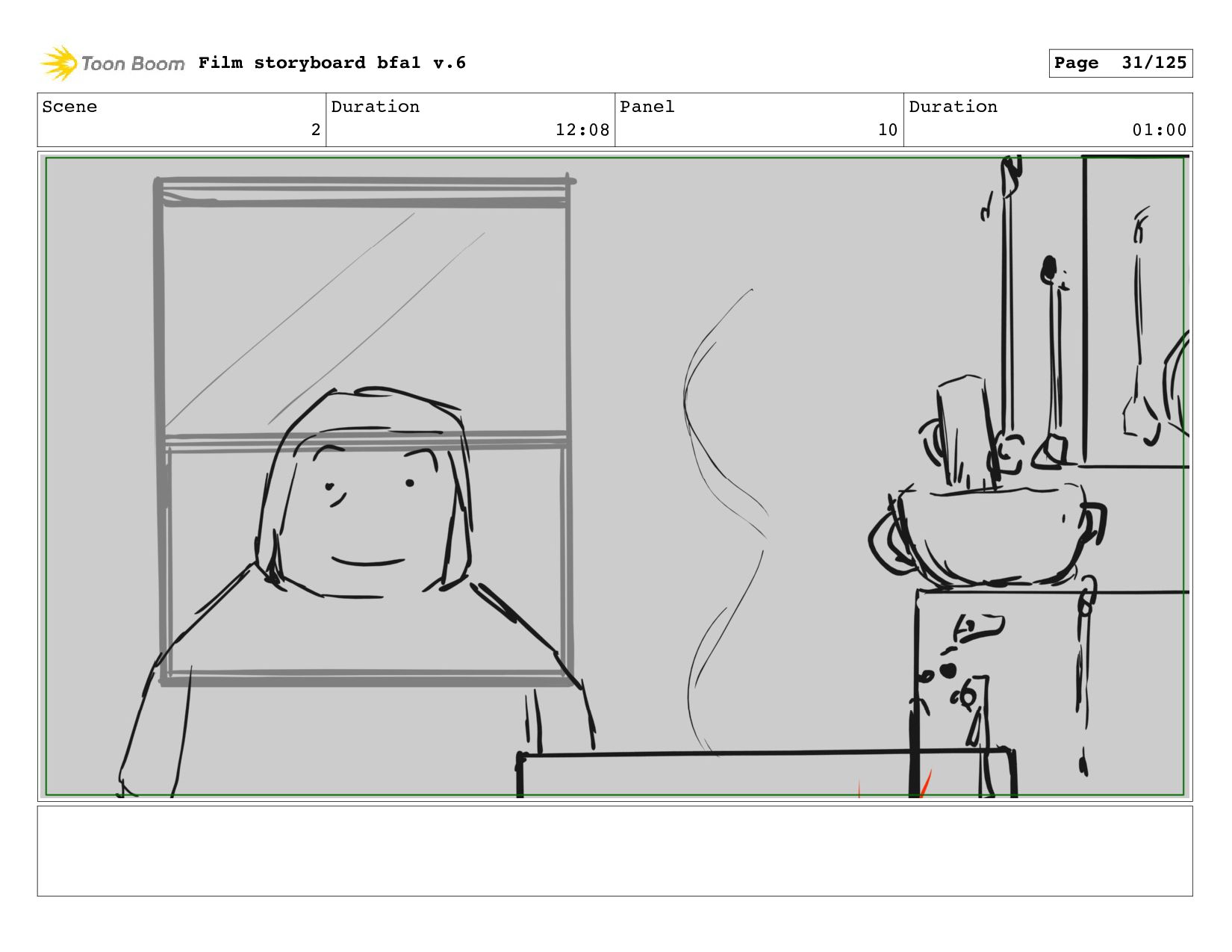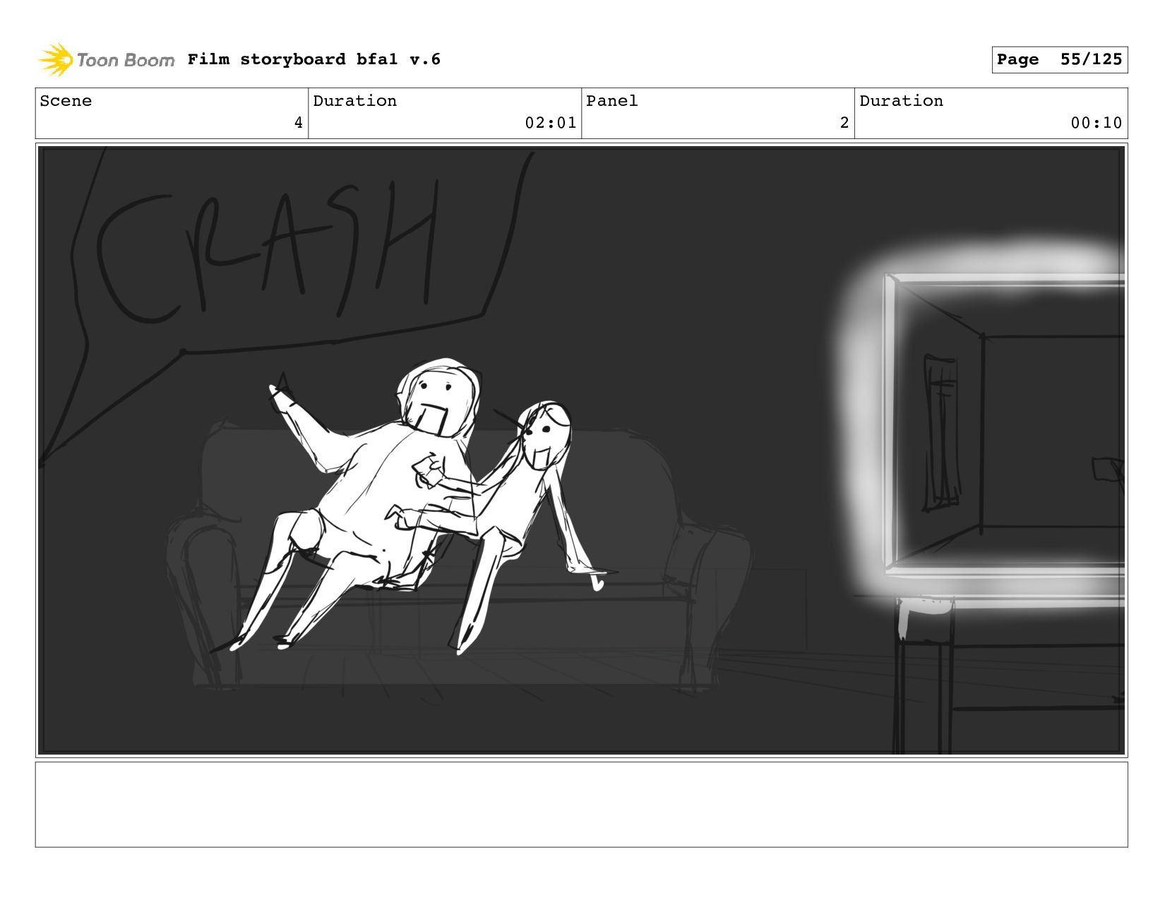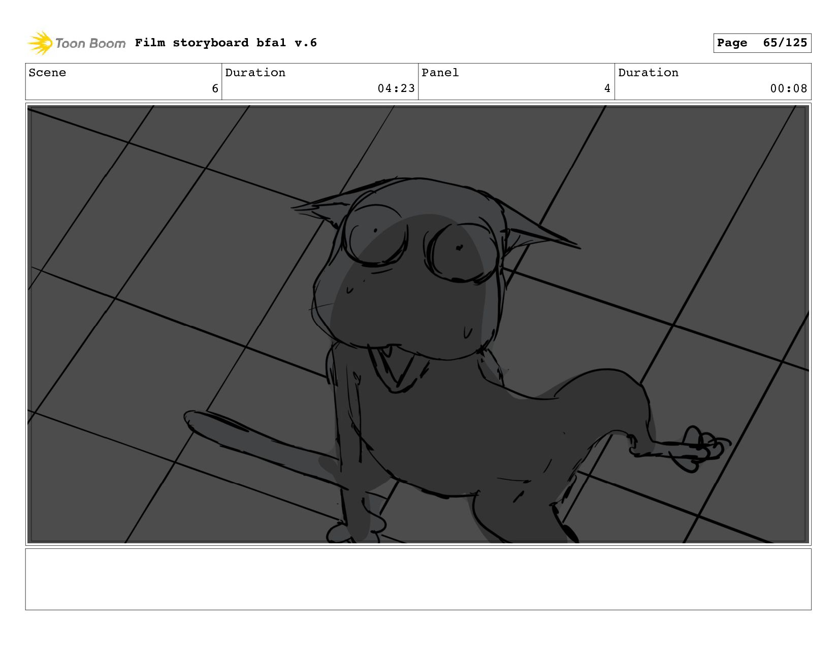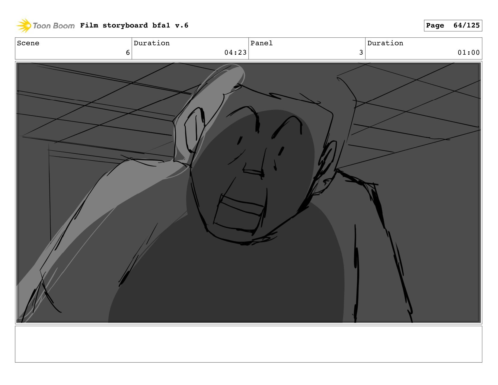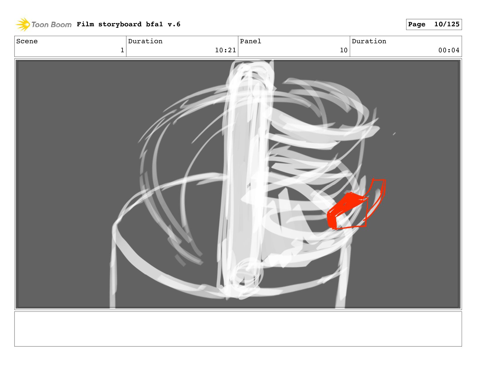 Scene 1 Duration 10:21 Panel 6 Duration 00:04 Film storyboard