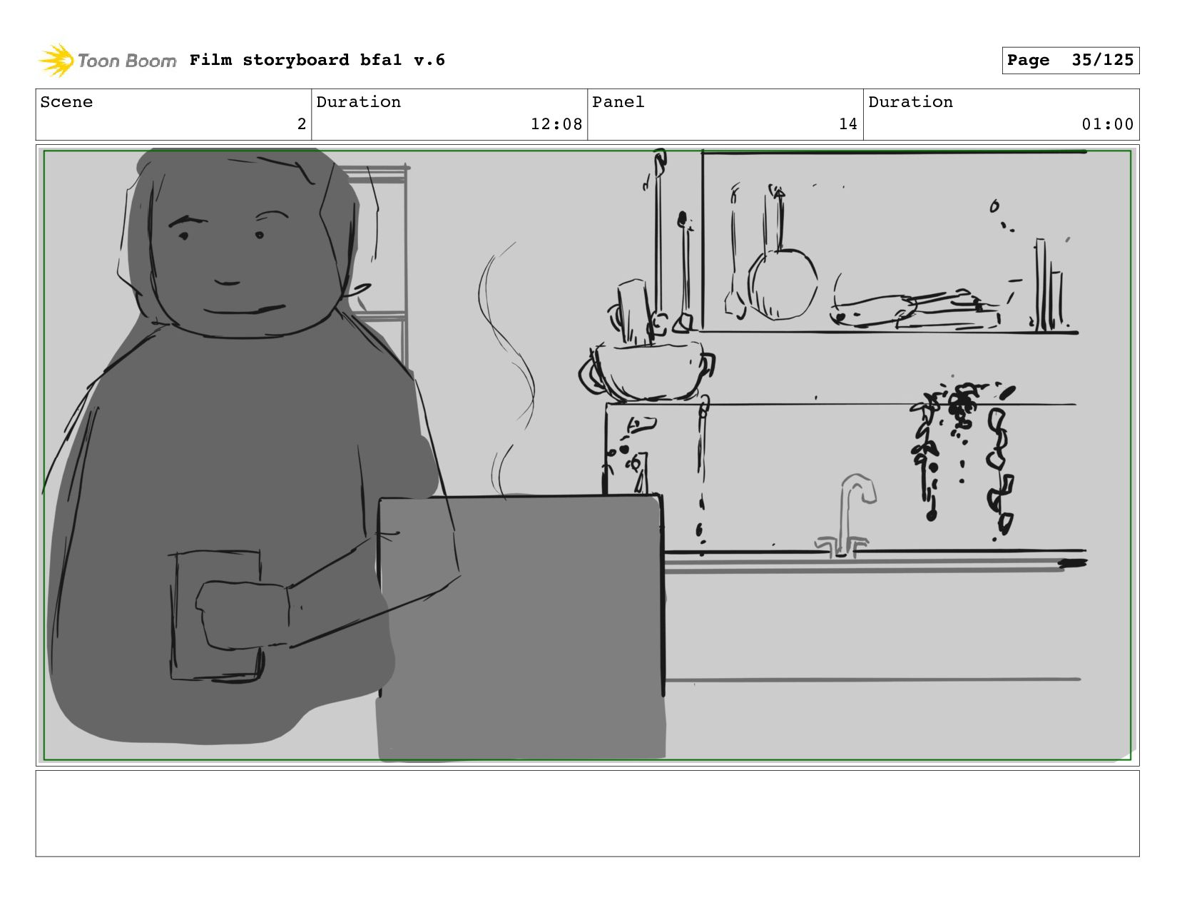 Scene 1 Duration 10:21 Panel 14 Duration 01:00 Film storyboard