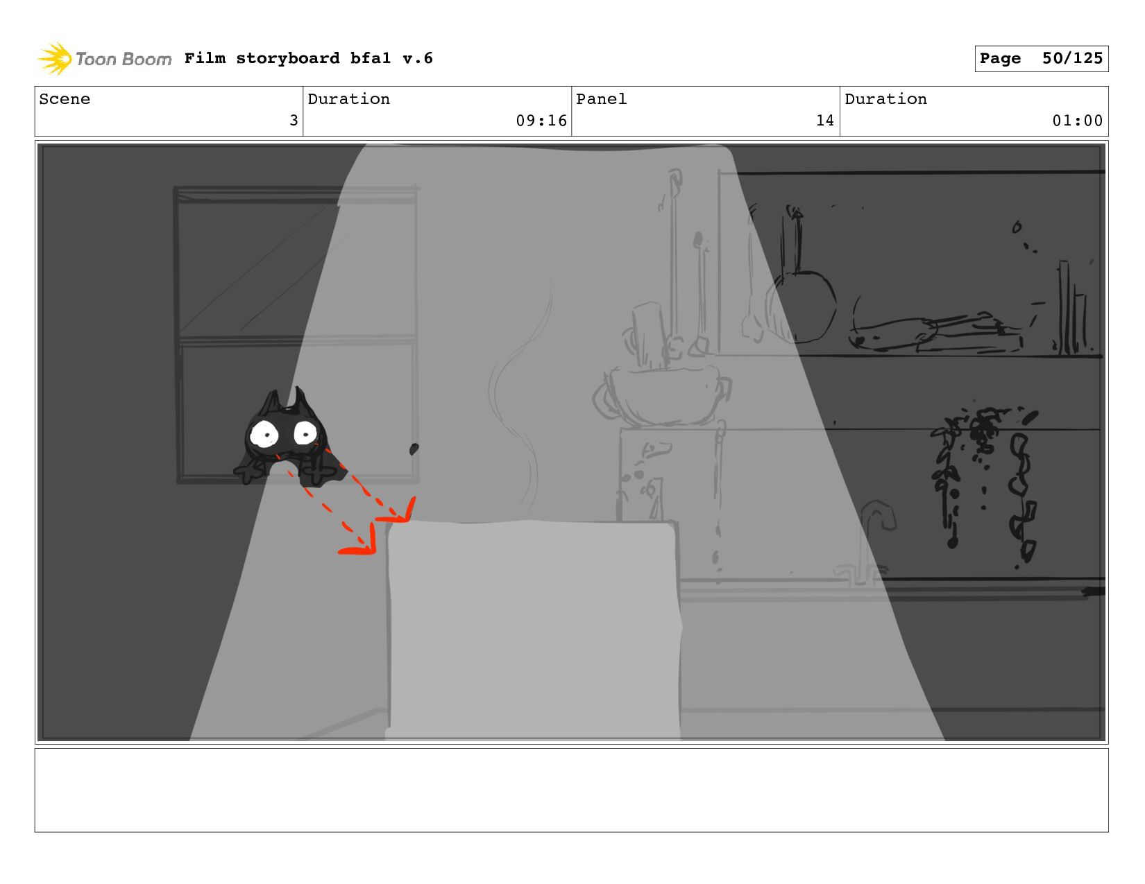 Scene 13 Duration 04:20 Panel 1 Duration 01:00 Film storyboard