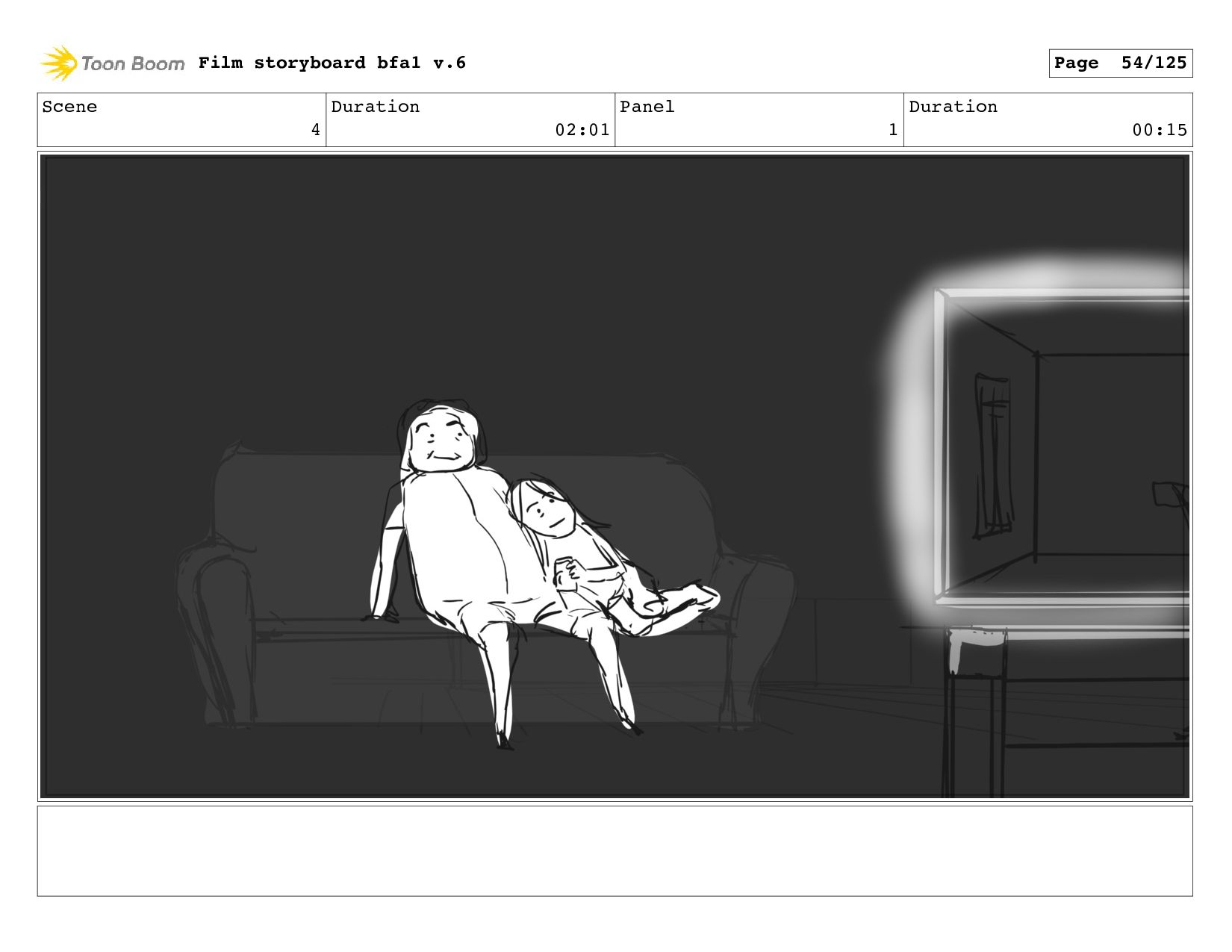 Scene 1 Duration 10:21 Panel 4 Duration 00:01 Film storyboard