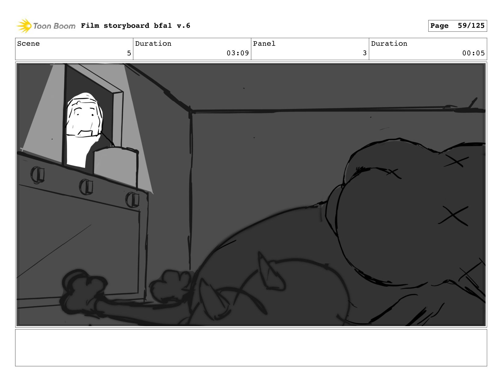 Scene 12 Duration 06:19 Panel 5 Duration 01:00 Film storyboard