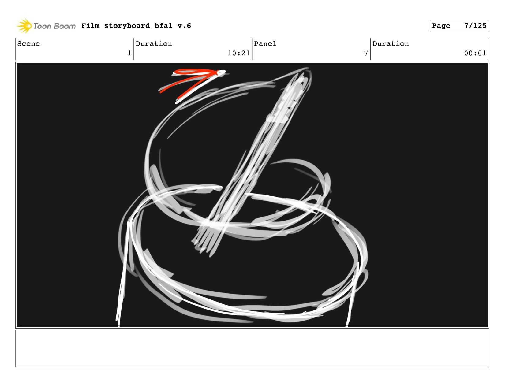 Scene 1 Duration 10:21 Panel 7 Duration 00:01 Film storyboard