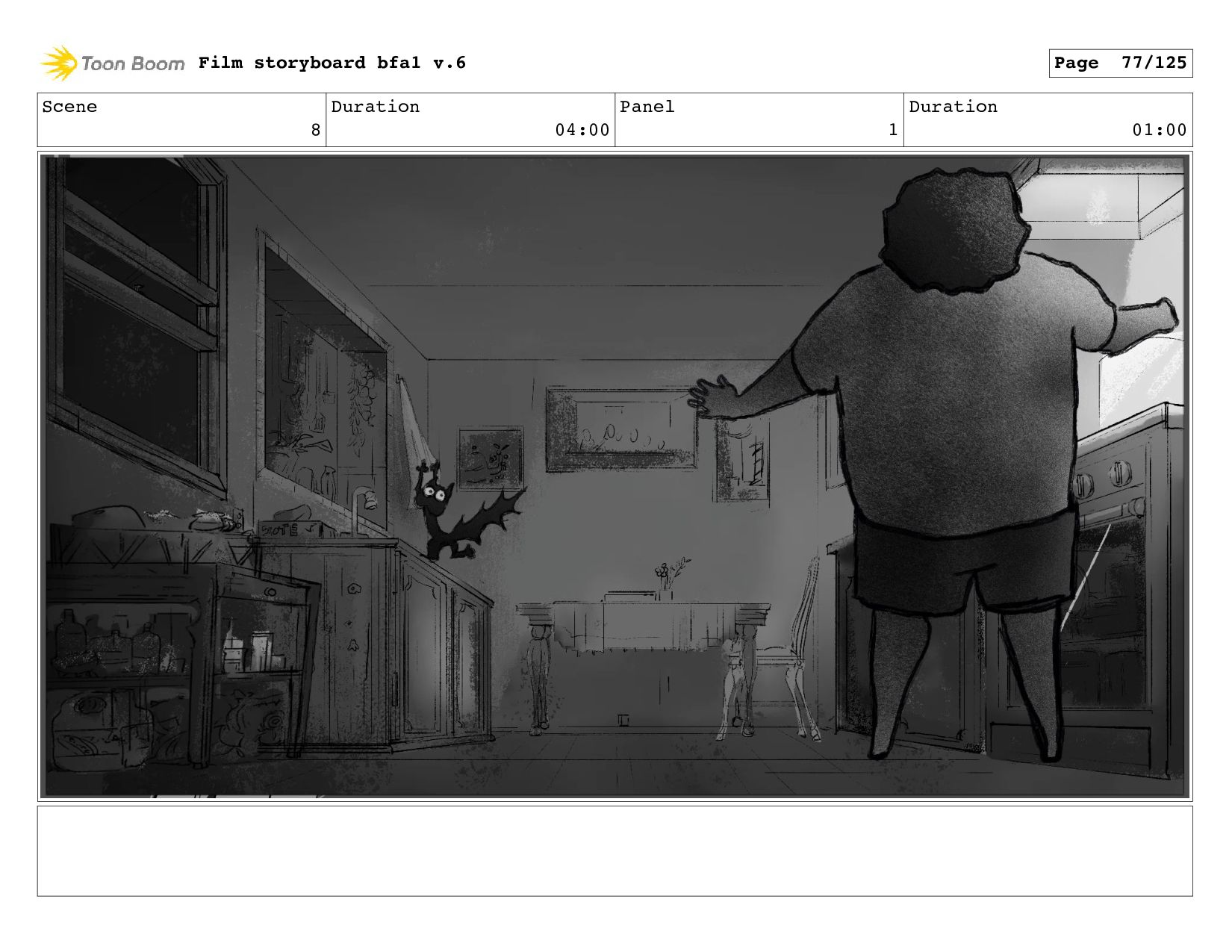 Scene 8 Duration 04:00 Panel 4 Duration 01:00 Film storyboard