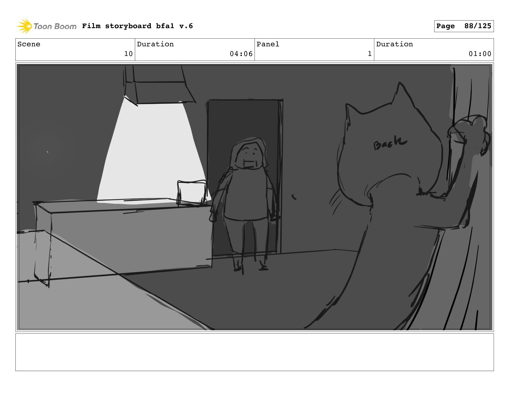 Scene 10 Duration 04:06 Panel 1 Duration 01:00 Film storyboard