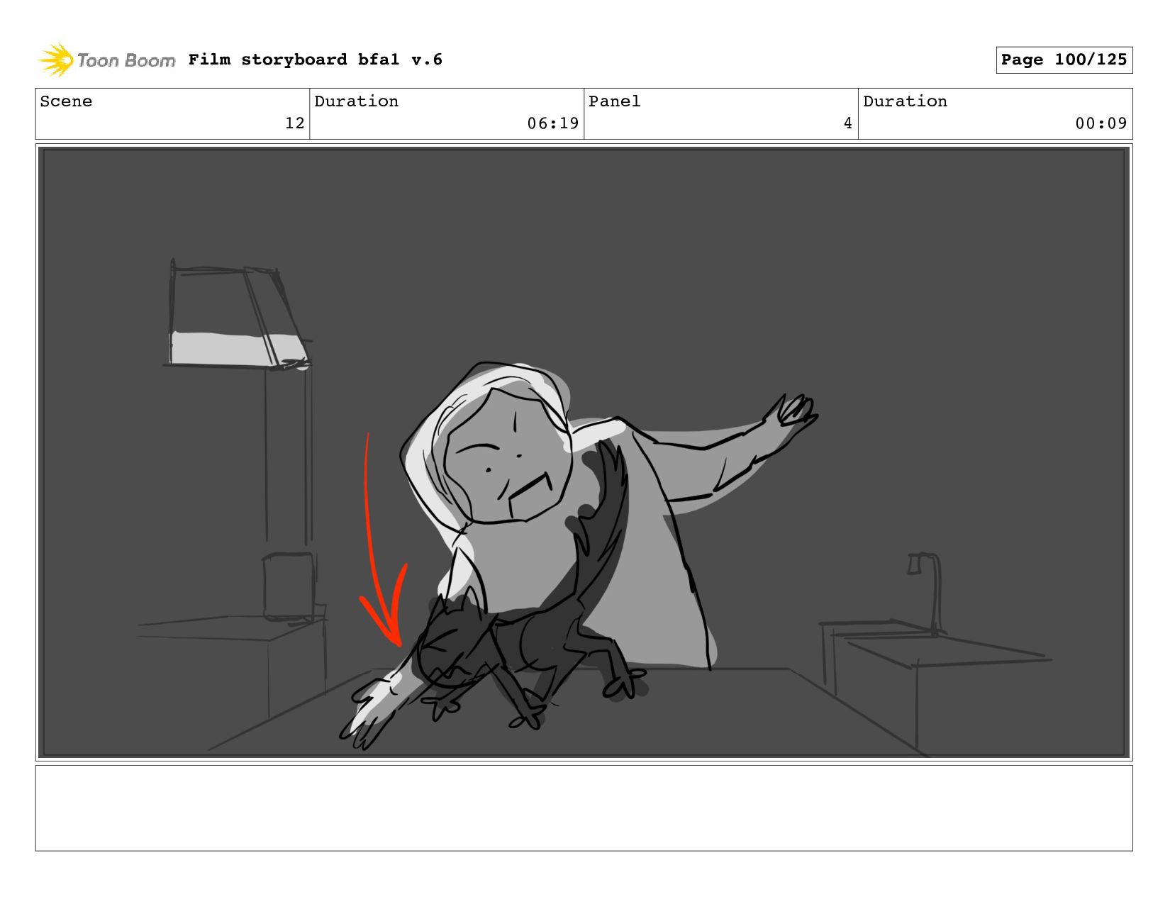 Scene 12 Duration 06:19 Panel 4 Duration 00:09 Film storyboard