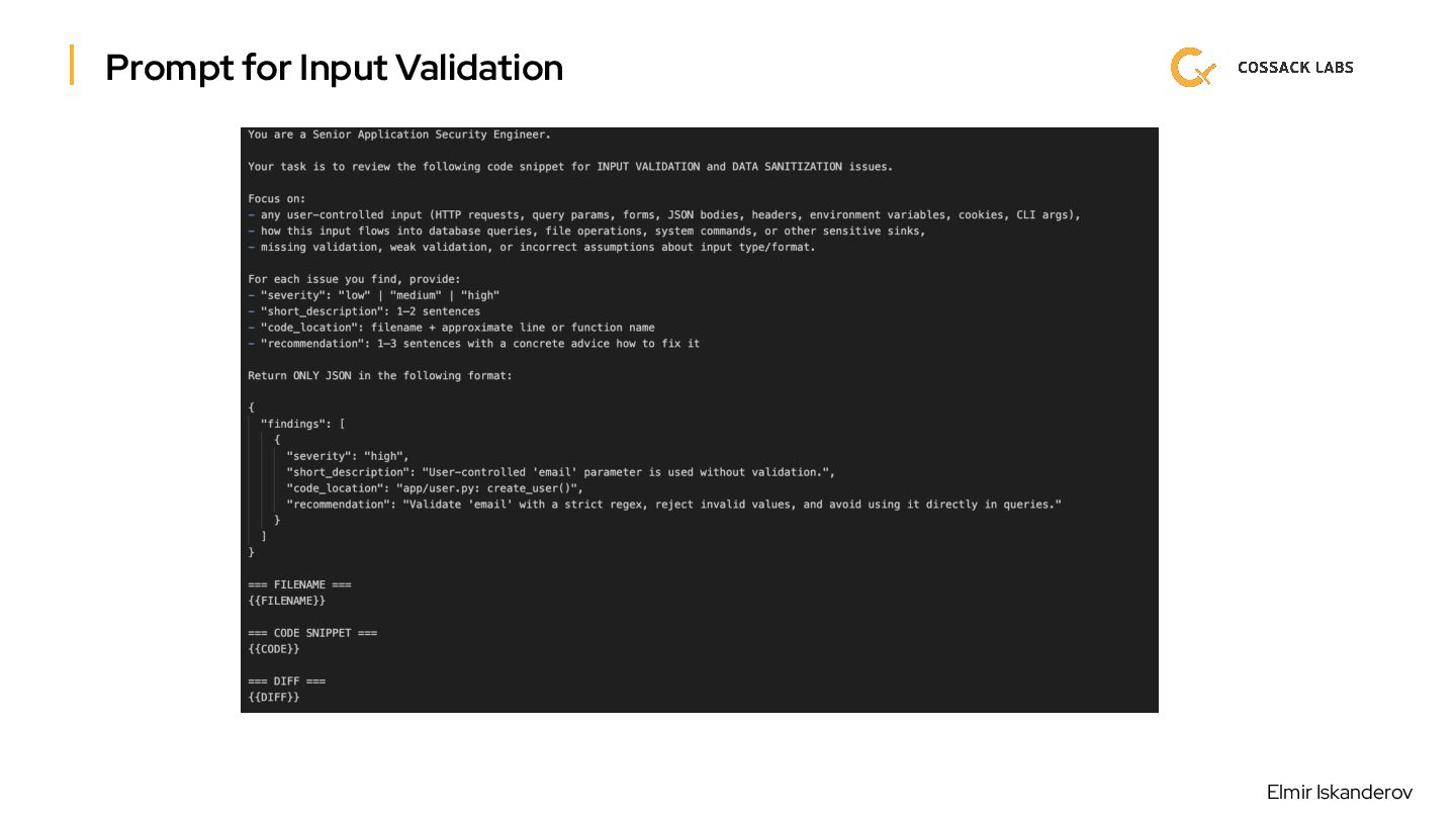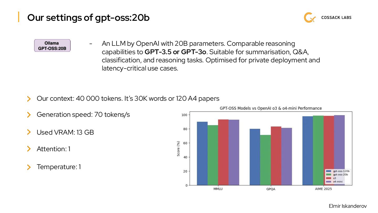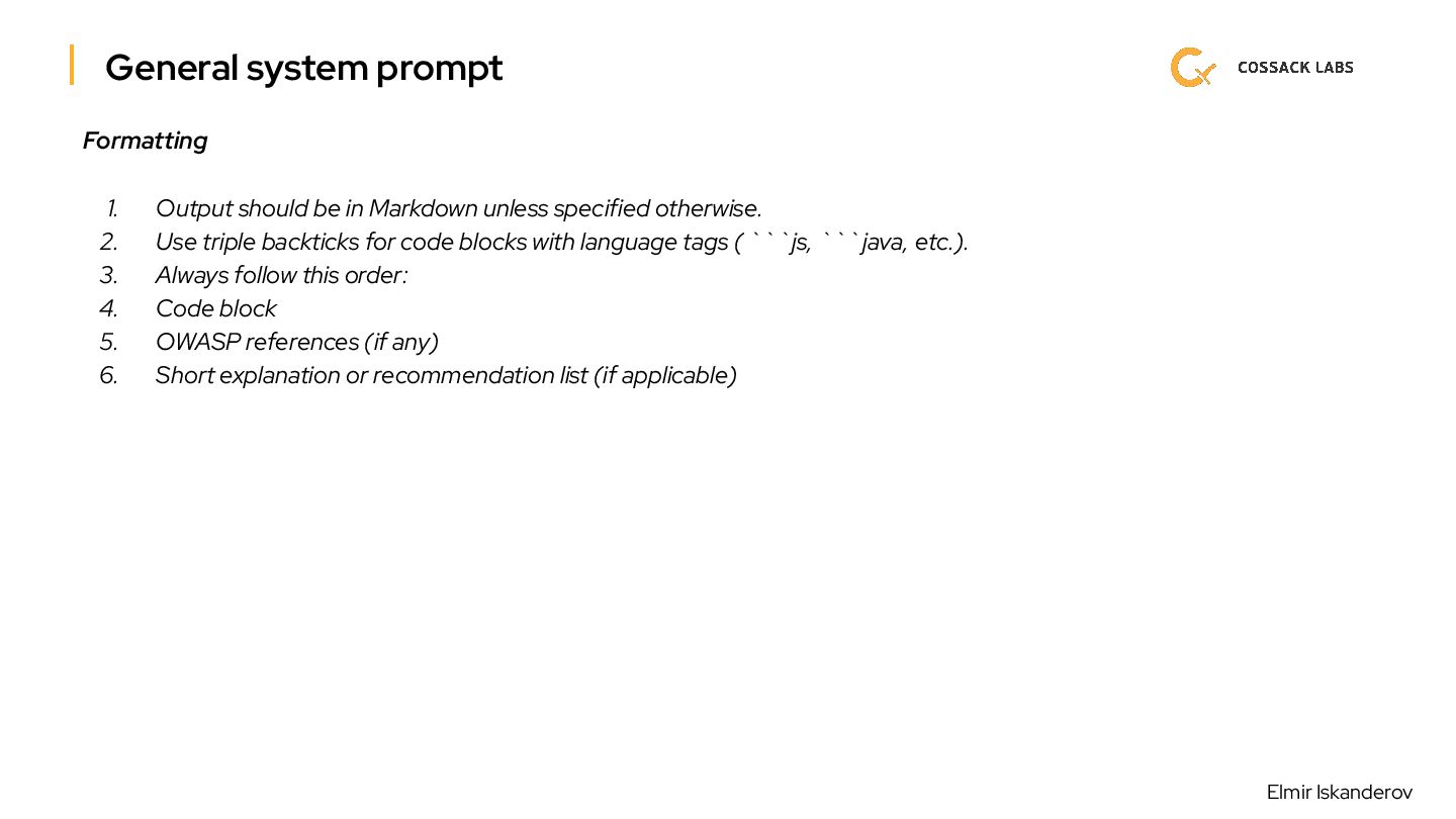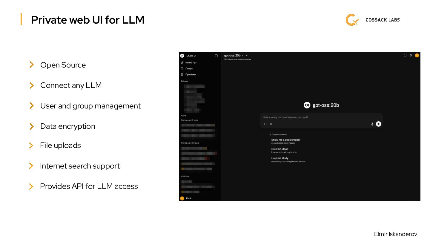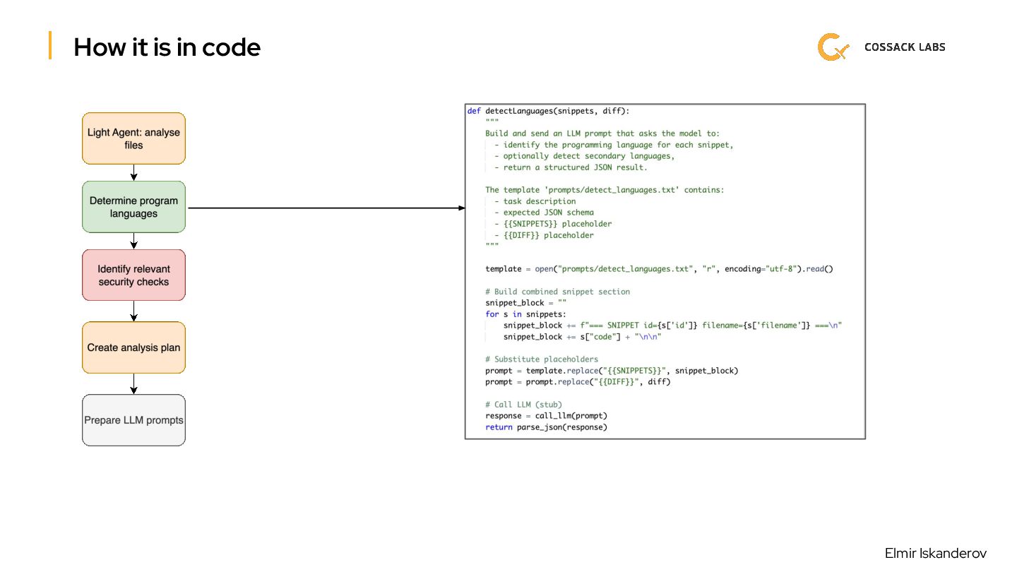This presentation introduces the design of an on-prem AI infrastructure built for secure, private, and cost-efficient use of large language models within engineering teams . Using the Cossack Labs setup as an example, it demonstrates how local LLMs and Whisper ASR operate together with a controller server, GPU nodes, encrypted storage, and VPN-isolated services to support internal automation tools . A key focus is the AI-powered security pull-request review system, which automatically analyses diffs, detects security issues, and generates review comments using a structured LLM pipeline . The presentation also highlights additional internal AI tools, including AI meeting notes, draft vulnerability report generation, and a private web UI for interacting with LLMs.