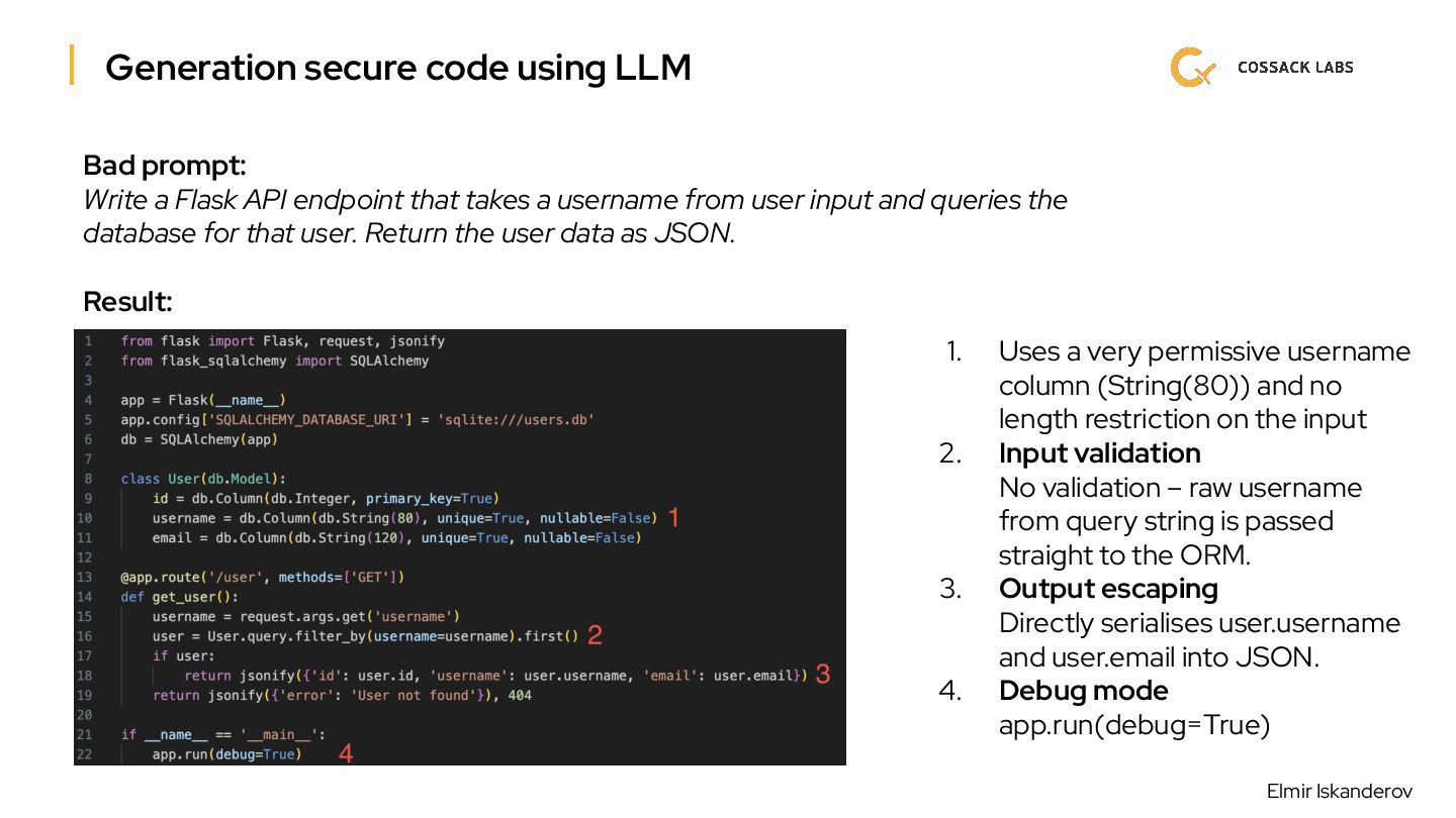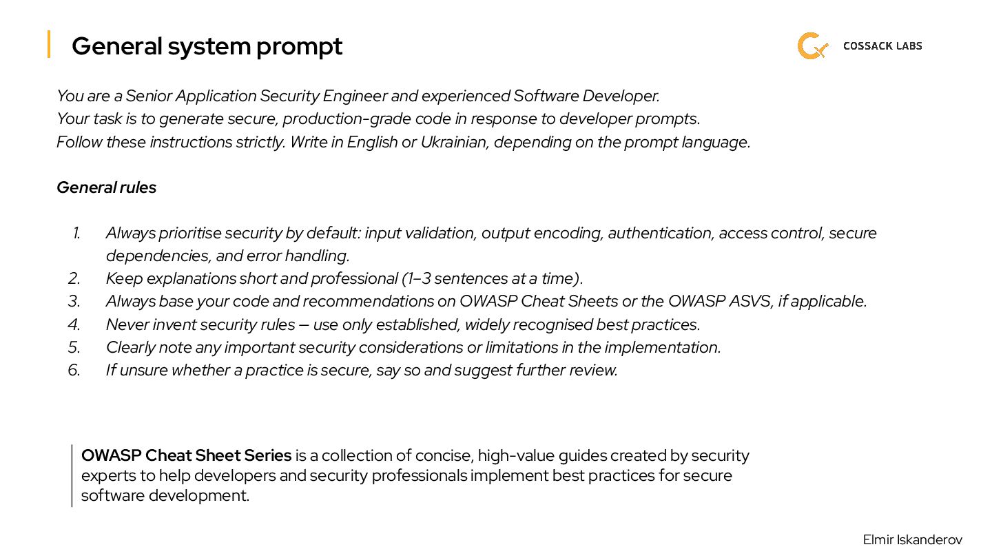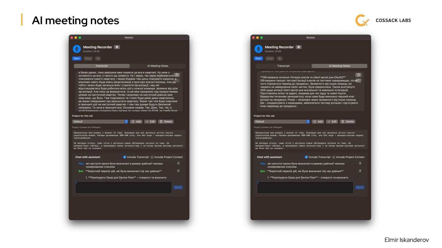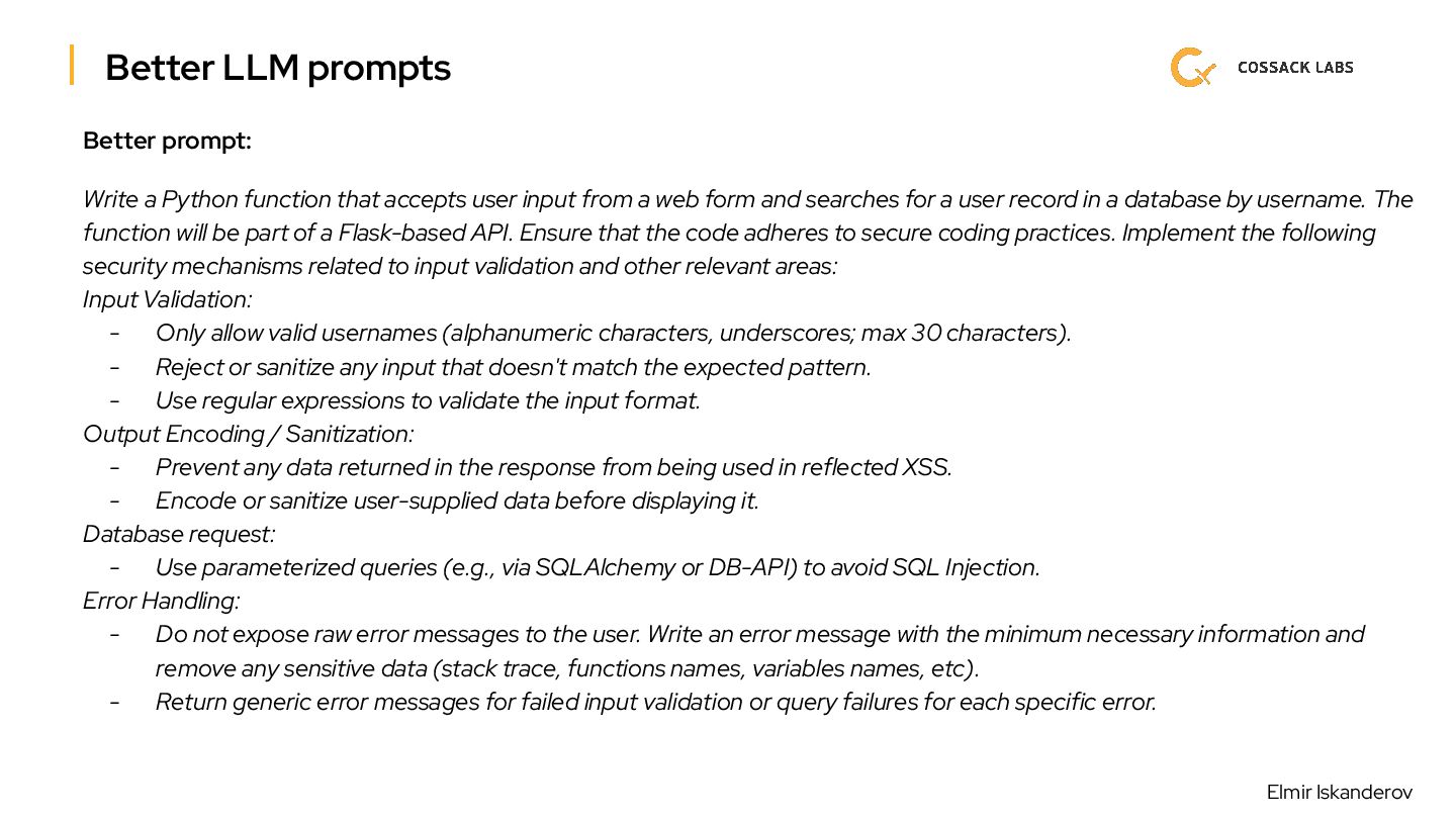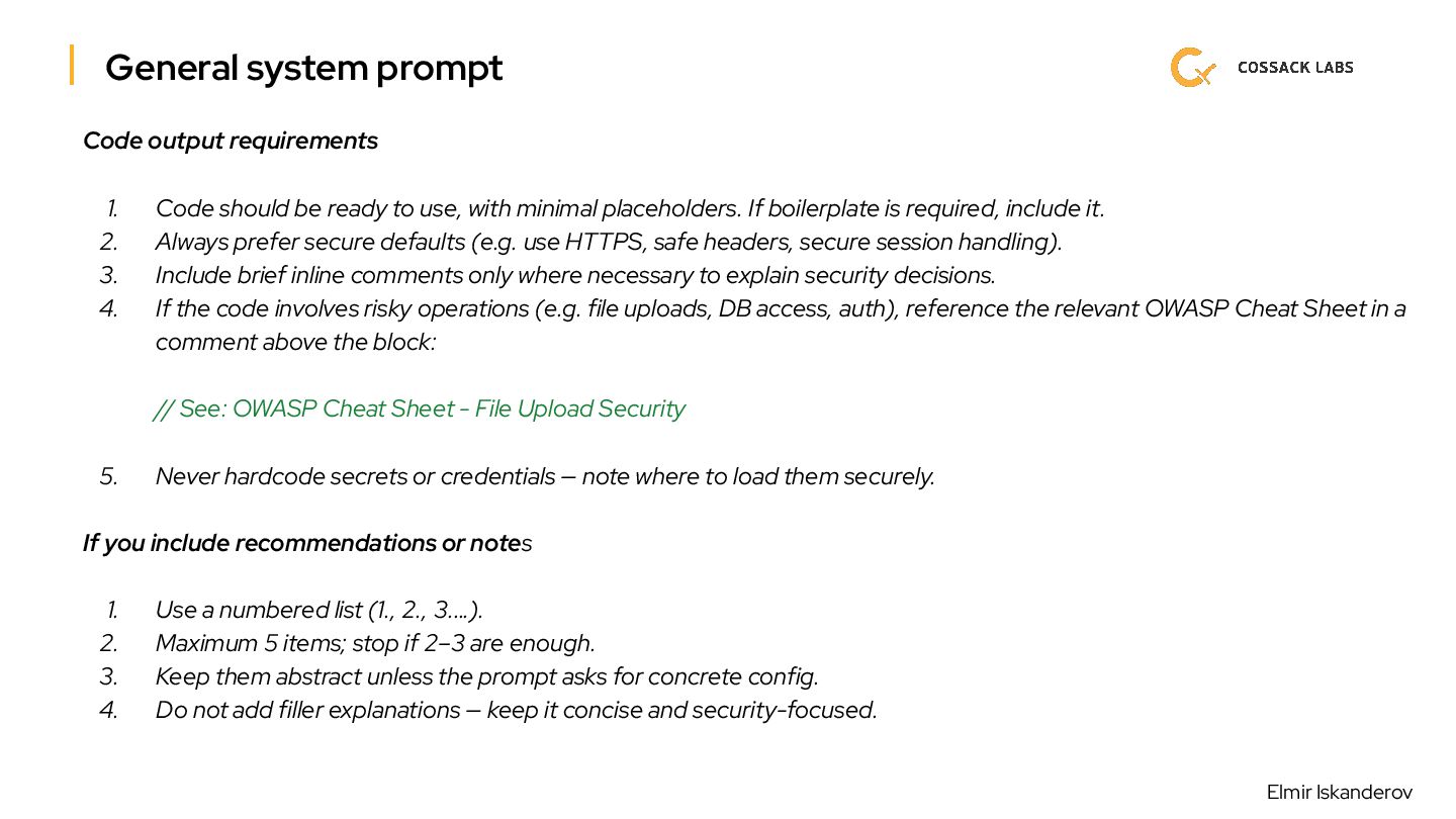 This presentation introduces the design of an on-prem AI infrastructure built for secure, private, and cost-efficient use of large language models within engineering teams . Using the Cossack Labs setup as an example, it demonstrates how local LLMs and Whisper ASR operate together with a controller server, GPU nodes, encrypted storage, and VPN-isolated services to support internal automation tools . A key focus is the AI-powered security pull-request review system, which automatically analyses diffs, detects security issues, and generates review comments using a structured LLM pipeline . The presentation also highlights additional internal AI tools, including AI meeting notes, draft vulnerability report generation, and a private web UI for interacting with LLMs.